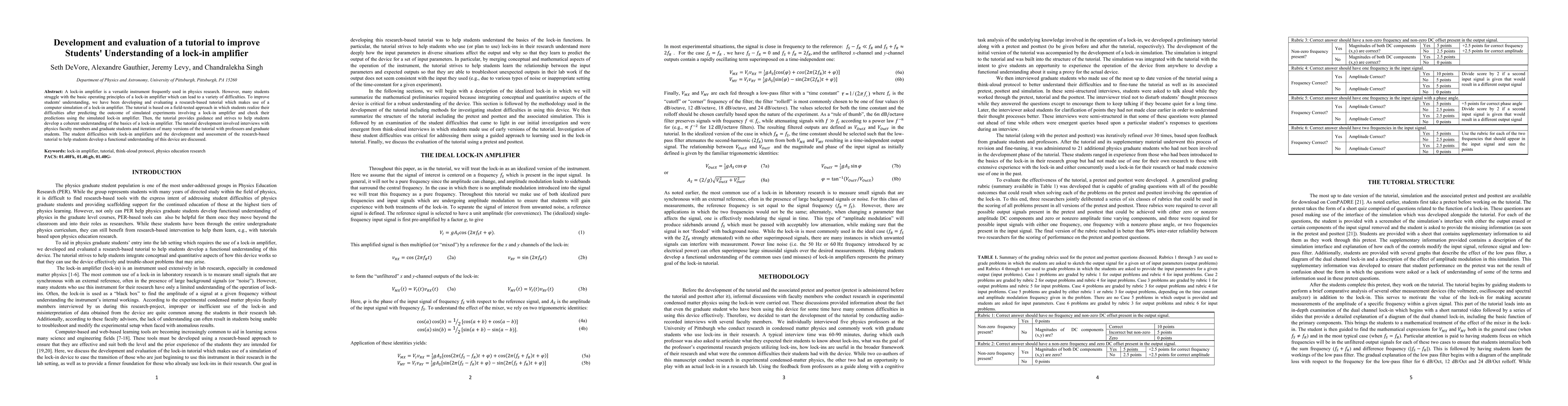 A lock-in amplifier is a versatile instrument frequently used in physics research. However, many students struggle with the basic operating principles of a lock-in amplifier which can lead to a variety of difficulties. To improve students' understanding, we have been developing and evaluating a research-based tutorial which makes use of a computer simulation of a lock-in amplifier. The tutorial is based on a field-tested approach in which students realize their difficulties after predicting the outcome of simulated experiments involving a lock-in amplifier and check their predictions using the simulated lock-in amplifier. Then, the tutorial provides guidance and strives to help students develop a coherent understanding of the basics of a lock-in amplifier. The tutorial development involved interviews with physics faculty members and graduate students and iteration of many versions of the tutorial with professors and graduate students. The student difficulties with lock-in amplifiers and the development and assessment of the research-based tutorial to help students develop a functional understanding of this device are discussed.