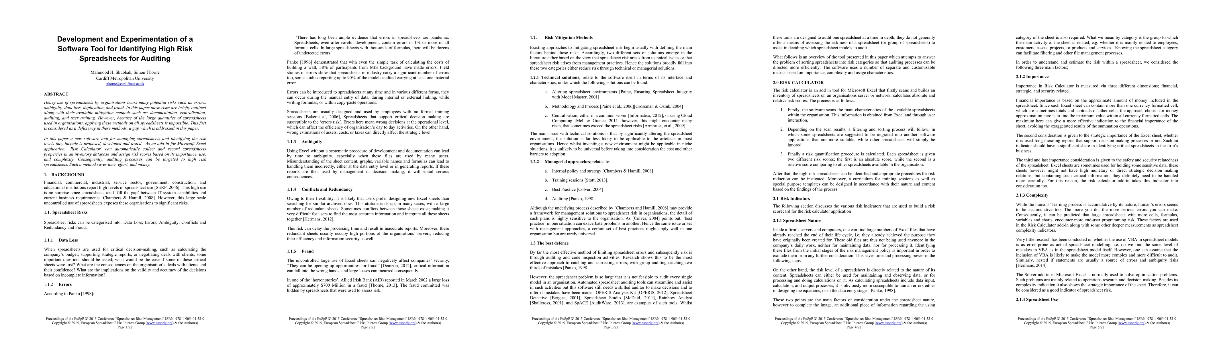 This paper introduces a software tool called "Risk Calculator" designed to identify high-risk spreadsheets in organizations. The tool automates the assessment of spreadsheet risks, thus enabling targeted auditing and mitigating the inefficiencies of manual risk evaluation across large volumes of spreadsheets.