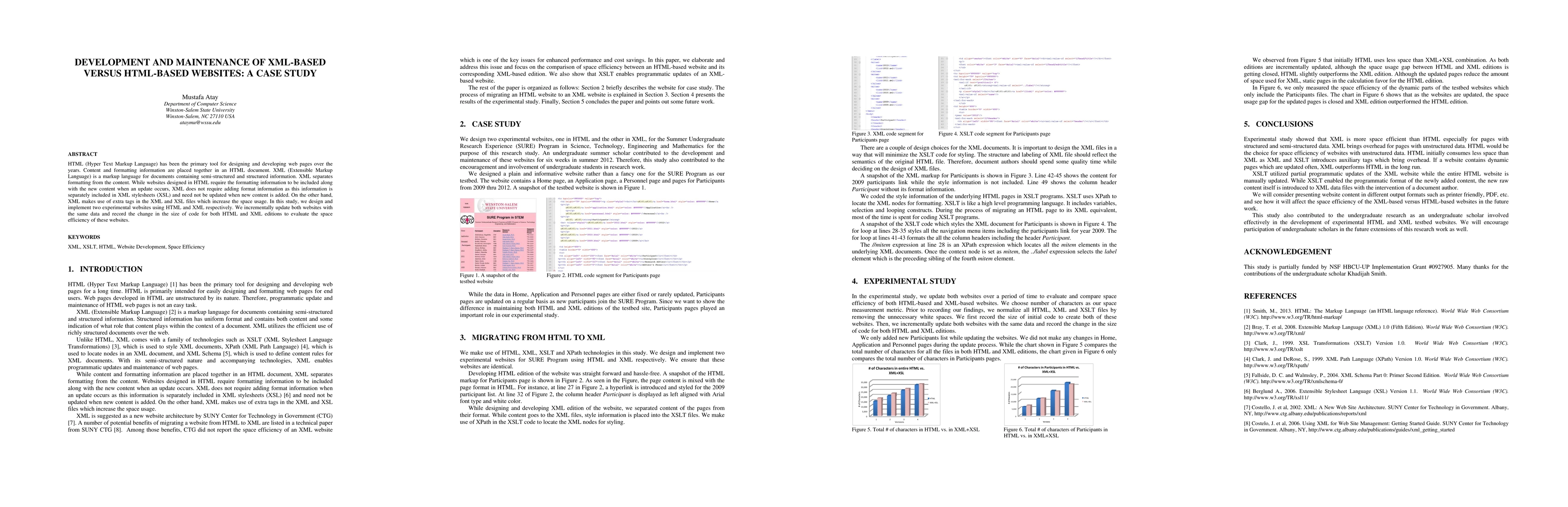 HTML (Hyper Text Markup Language) has been the primary tool for designing and developing web pages over the years. Content and formatting information are placed together in an HTML document. XML (Extensible Markup Language) is a markup language for documents containing semi-structured and structured information. XML separates formatting from the content. While websites designed in HTML require the formatting information to be included along with the new content when an update occurs, XML does not require adding format information as this information is separately included in XML stylesheets (XSL) and need not be updated when new content is added. On the other hand, XML makes use of extra tags in the XML and XSL files which increase the space usage. In this study, we design and implement two experimental websites using HTML and XML respectively. We incrementally update both websites with the same data and record the change in the size of code for both HTML and XML editions to evaluate the space efficiency of these websites.