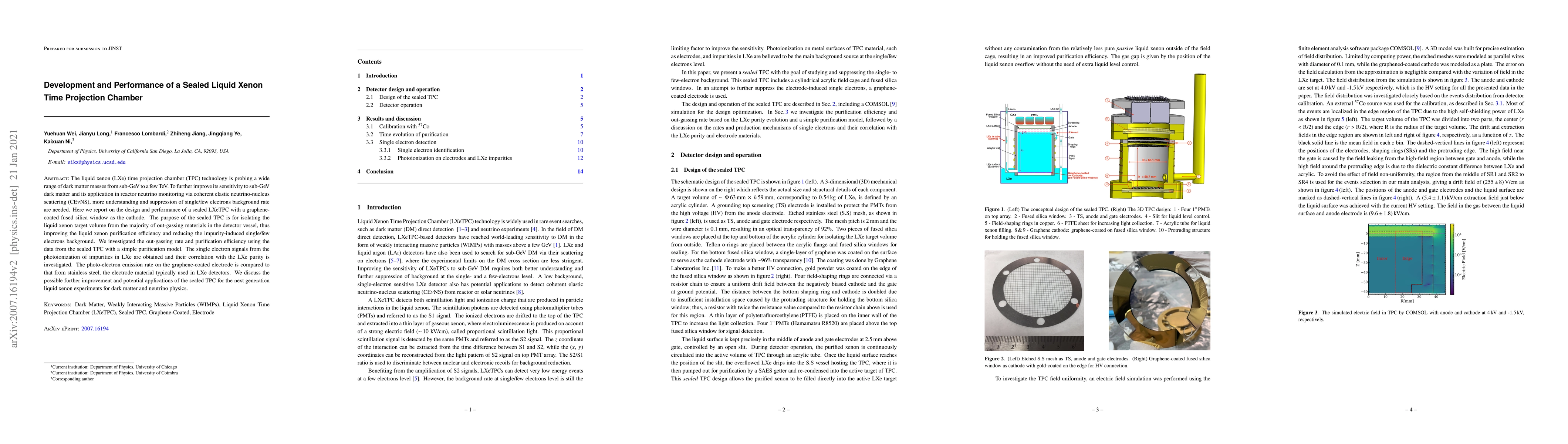 The liquid xenon (LXe) time projection chamber (TPC) technology is probing a wide range of dark matter masses from sub-GeV to a few TeV. To further improve its sensitivity to sub-GeV dark matter and its application in reactor neutrino monitoring via coherent elastic neutrino-nucleus scattering (CEvNS), more understanding and suppression of single/few electrons background rate are needed. Here we report on the design and performance of a sealed LXeTPC with a graphene-coated fused silica window as the cathode. The purpose of the sealed TPC is for isolating the liquid xenon target volume from the majority of out-gassing materials in the detector vessel, thus improving the liquid xenon purification efficiency and reducing the impurity-induced single/few electrons background. We investigated the out-gassing rate and purification efficiency using the data from the sealed TPC with a simple purification model. The single electron signals from the photoionization of impurities in LXe are obtained and their correlation with the LXe purity is investigated. The photo-electron emission rate on the graphene-coated electrode is compared to that from stainless steel, the electrode material typically used in LXe detectors. We discuss the possible further improvement and potential applications of the sealed TPC for the next generation liquid xenon experiments for dark matter and neutrino physics.