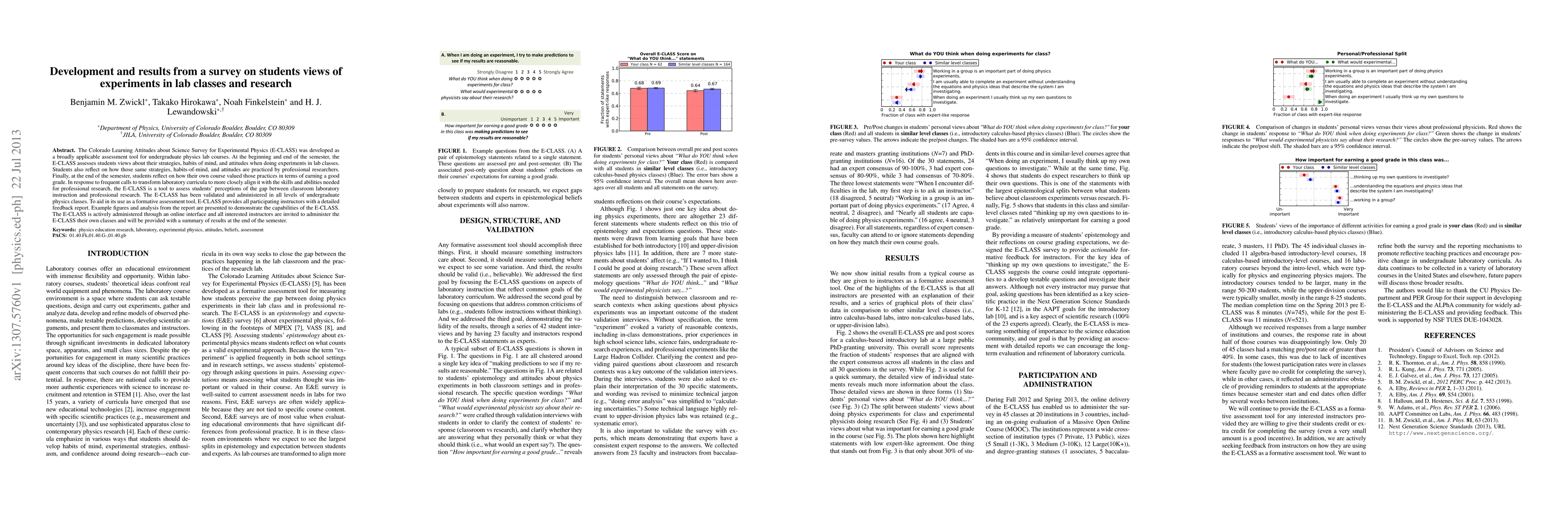 The E-CLASS survey assesses students' views on their lab strategies, habits, and attitudes in physics courses, comparing them to professional research practices, and provides instructors with feedback to help bridge the gap between classroom and research skills. The survey has been validated and is available online for use in various undergraduate physics classes.