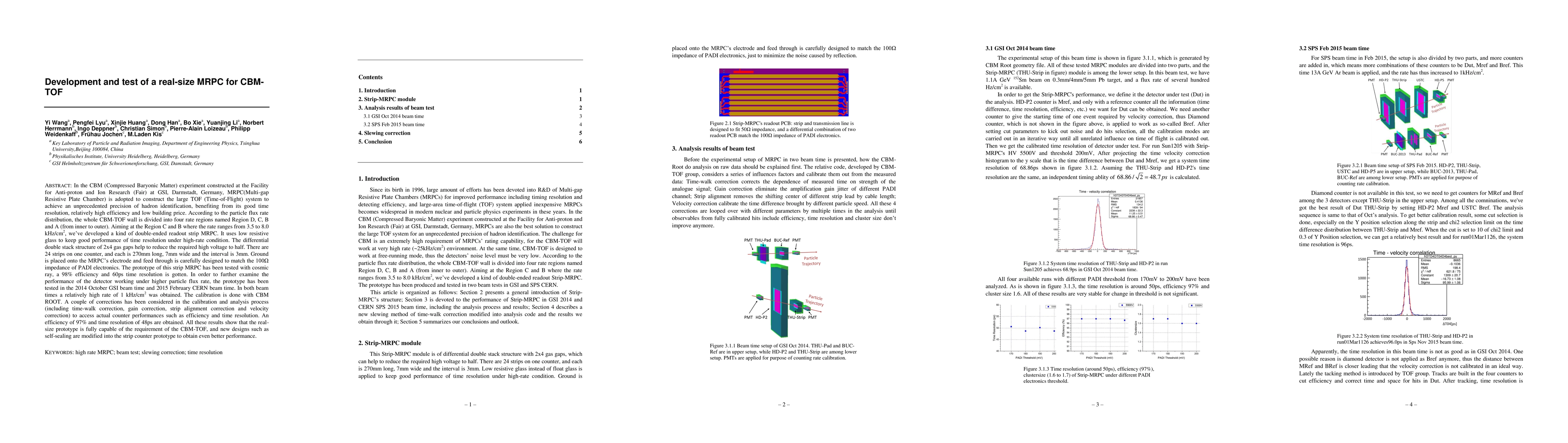 This paper details the development and testing of a real-size MRPC for the CBM-TOF system, achieving high efficiency and precision time resolution under high-rate conditions, with an efficiency of 97% and a time resolution of 48ps, demonstrating its suitability for the CBM experiment.