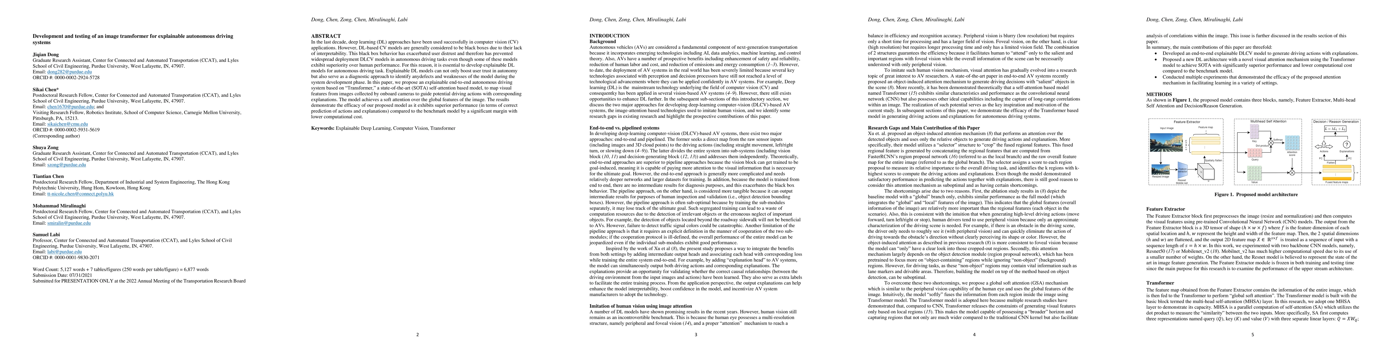 This paper proposes an explainable autonomous driving system using a Transformer model to map visual features to driving actions, providing both accurate predictions and explanations. The model demonstrates superior performance and lower computational costs compared to benchmark models.