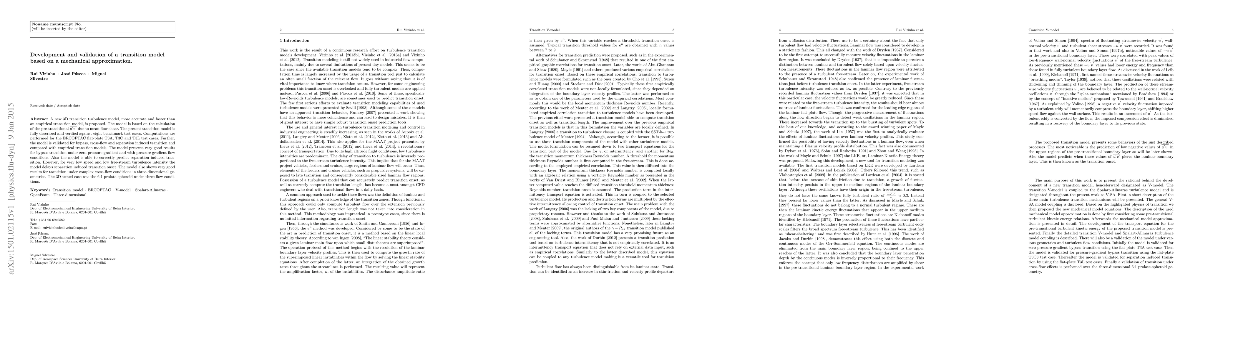 A new 3D transition turbulence model, more accurate and faster than an empirical transition model, is proposed. The model is based on the calculation of the pre-transitional u'v' due to mean flow shear. The present transition model is fully described and verified against eight benchmark test cases. Computations are performed for the ERCOFTAC flat-plate T3A, T3C and T3L test cases. Further, the model is validated for bypass, cross-flow and separation induced transition and compared with empirical transition models. The model presents very good results for bypass transition under zero-pressure gradient and with pressure gradient flow conditions. Also the model is able to correctly predict separation induced transition. However, for very low speed and low free-stream turbulence intensity the model delays separation induced transition onset. The model also shows very good results for transition under complex cross-flow conditions in three-dimensional geometries. The 3D tested case was the 6:1 prolate-spheroid under three flow conditions.
