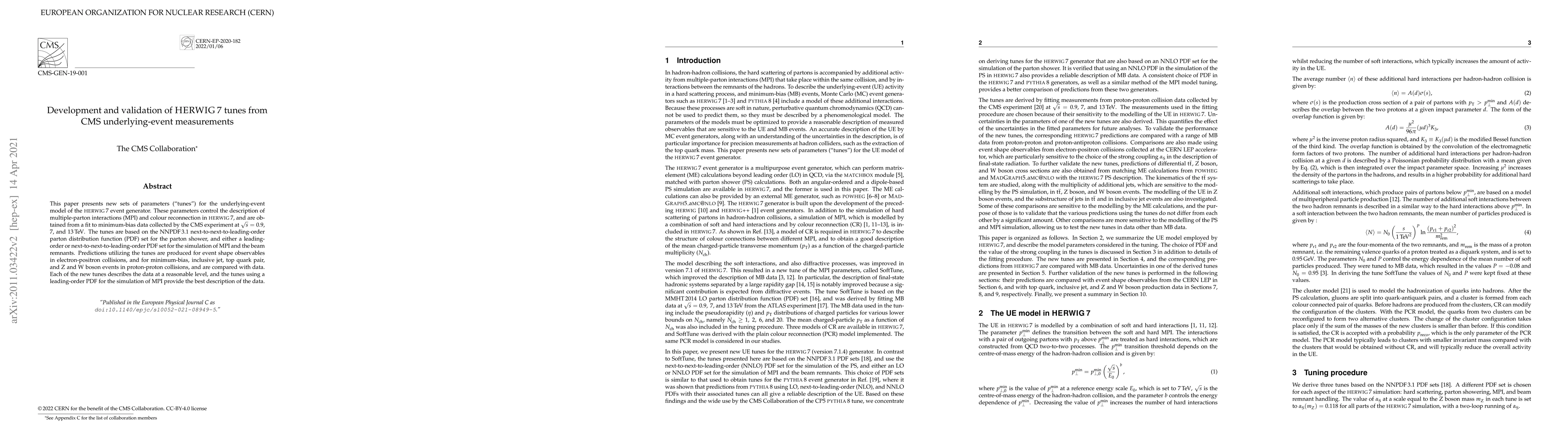 This paper develops new HERWIG 7 tunes for underlying-event modeling, derived from CMS minimum-bias data at various collision energies, and validates them against a range of observables in electron-positron and proton-proton collisions. The tunes using leading-order PDF for MPI simulation provide the best fit to the data.