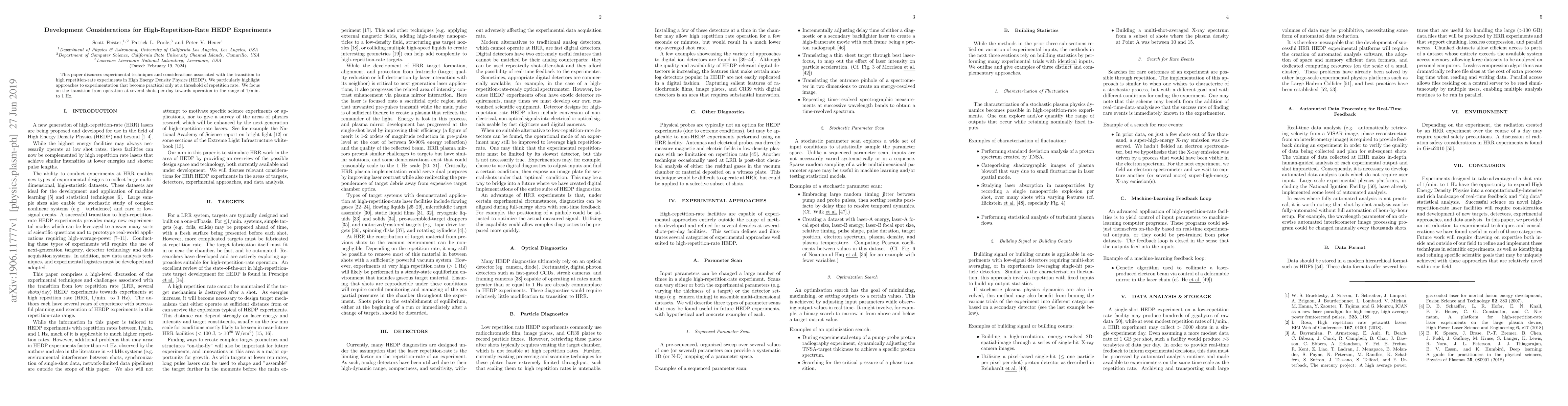 This paper explores the experimental techniques and considerations necessary for transitioning to high repetition-rate experiments in High Energy Density Physics (HEDP), emphasizing practical approaches that become feasible at a threshold of 1/min to 1 Hz. It addresses the challenges and innovations required for such a shift from several-shots-per-day operations.
