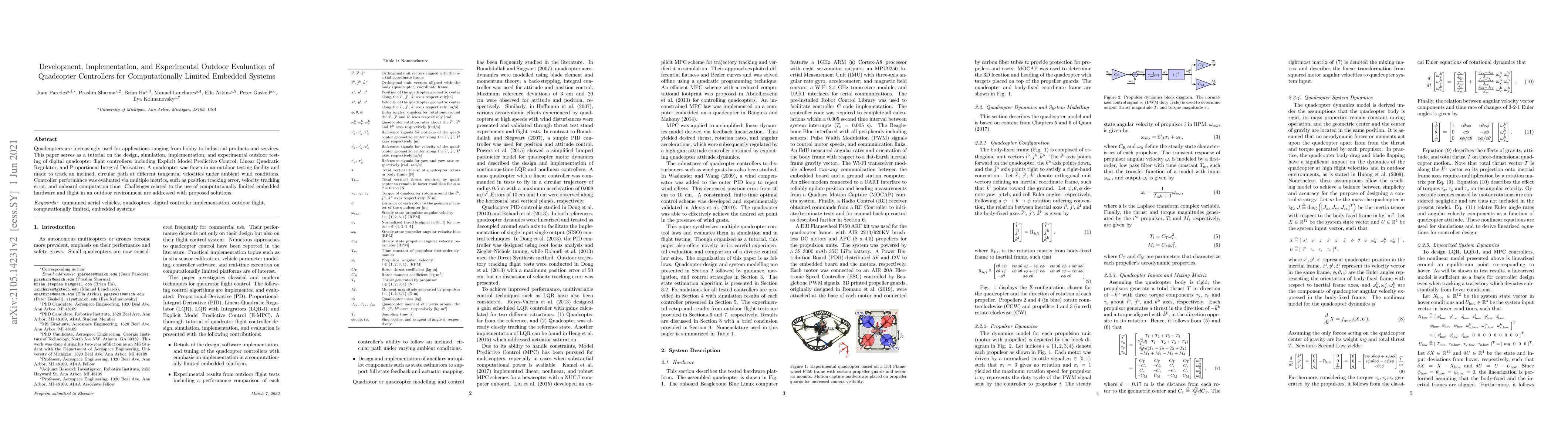 Researchers developed and tested quadcopter controllers for computationally limited systems, demonstrating improved performance in outdoor conditions despite challenges from ambient wind and onboard computation time.