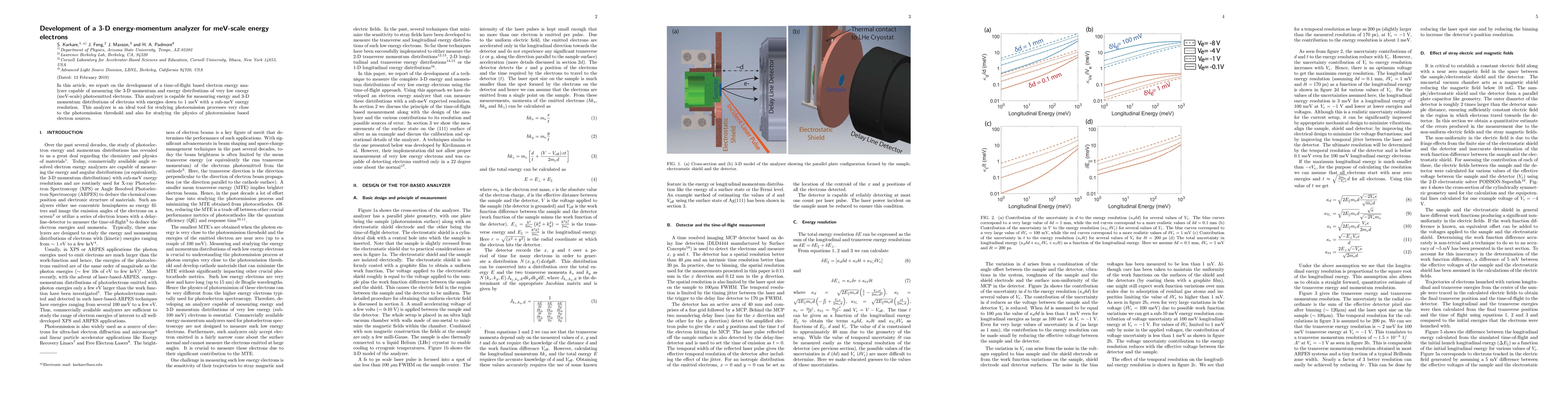 This paper details the creation of a 3-D energy-momentum analyzer for meV-scale electrons, utilizing time-of-flight techniques to measure energy and 3-D momentum distributions with sub-meV resolution, suitable for studying photoemission processes near the threshold.