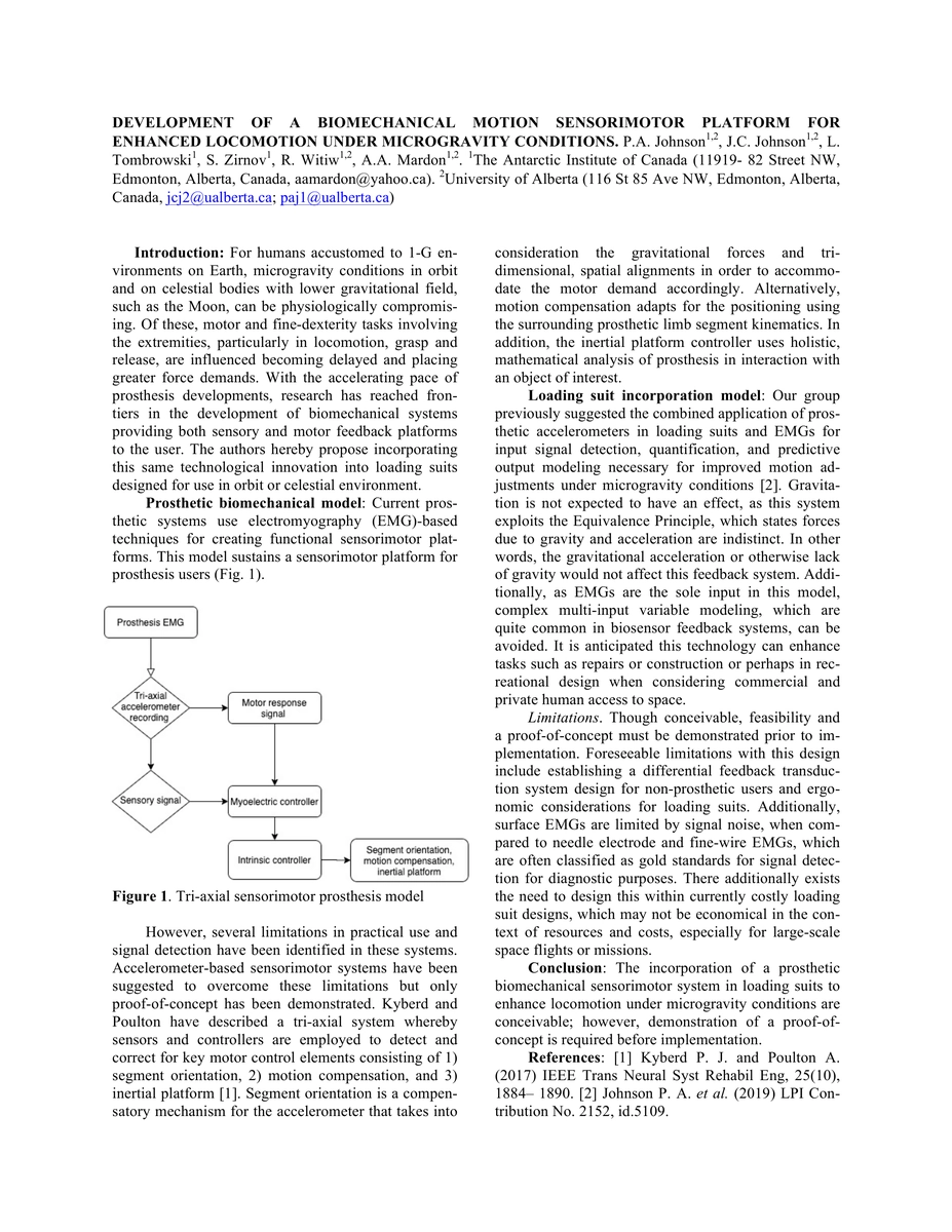 For humans accustomed to 1-G environments on Earth, microgravity conditions in orbit and on celestial bodies with lower gravitational field, such as the Moon, can be physiologically compromising. Of these, motor and fine-dexterity tasks involving the extremities, particularly in locomotion, grasp and release, are influenced becoming delayed and placing greater force demands. The authors hereby propose incorporating this same technological innovation into loading suits designed for use in orbit or celestial environment. Current prosthetic systems use electromyography (EMG)-based techniques for creating functional sensorimotor platforms. This model sustains a sensorimotor platform for prosthesis users. However, several limitations in practical use and signal detection have been identified in these systems. Accelerometer-based sensorimotor systems have been suggested to overcome these limitations but only proof-of-concept has been demonstrated. Our group previously suggested the combined application of prosthetic accelerometers in loading suits and EMGs for input signal detection, quantification, and predictive output modelling necessary for improved motion adjustments under microgravity conditions. It is anticipated this technology can enhance tasks such as repairs or construction or perhaps in recreational design when considering commercial and private human access to space. The incorporation of a prosthetic biomechanical sensorimotor system in loading suits to enhance locomotion under microgravity conditions are conceivable; however, demonstration of a proof-of-concept is required before implementation.
