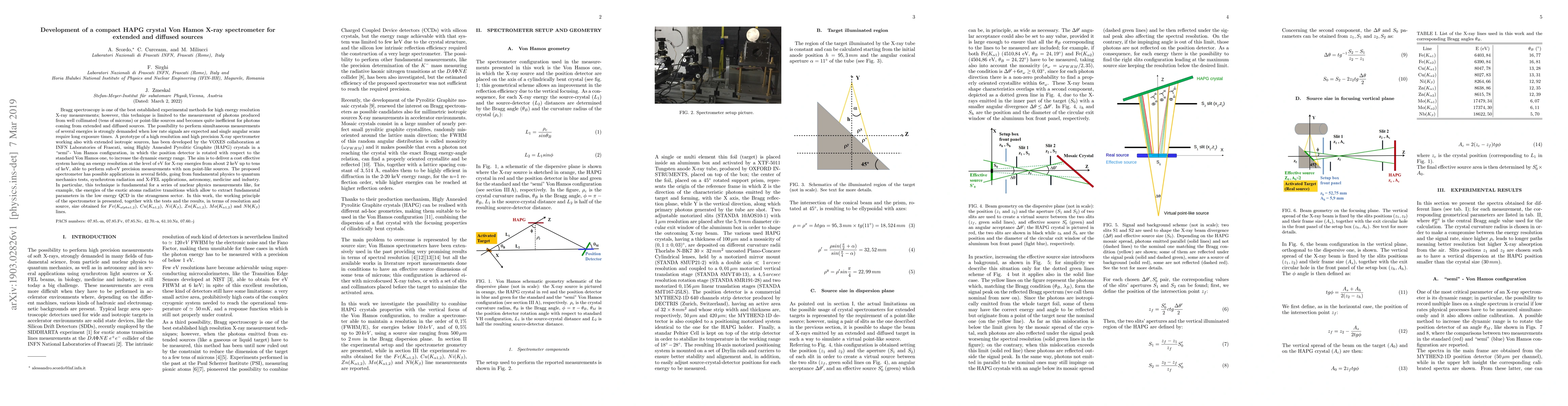 The paper describes the development of a compact HAPG crystal Von Hamos X-ray spectrometer for extended and diffused sources, aiming for high energy resolution and precision. The prototype, developed by the VOXES collaboration, uses a semi-Von Hamos configuration to enhance dynamic energy range and efficiency for non-point-like sources.