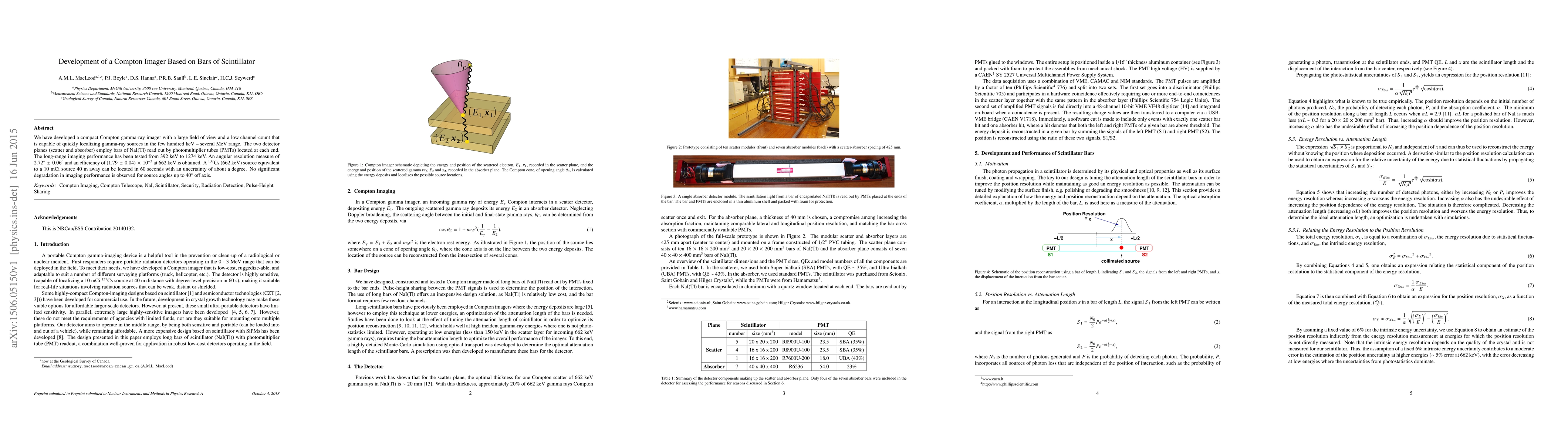 This paper details the development of a compact Compton gamma-ray imager using NaI(Tl) scintillator bars, achieving a large field of view and low channel-count. The device demonstrates an angular resolution of 2.72 +/- 0.06 degrees and can localize a Cs-137 source within 60 seconds with an uncertainty of about a degree.