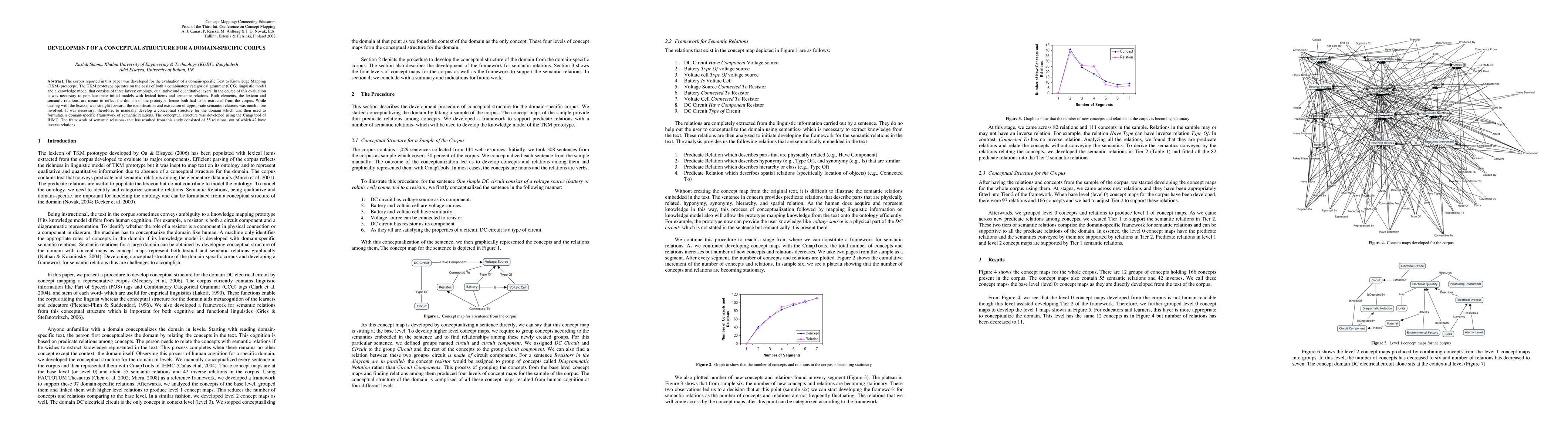 The corpus reported in this paper was developed for the evaluation of a domain-specific Text to Knowledge Mapping (TKM) prototype. The TKM prototype operates on the basis of both a combinatory categorical grammar (CCG) linguistic model and a knowledge model that consists of three layers: ontology, qualitative and quantitative layers. In the course of this evaluation it was necessary to populate these initial models with lexical items and semantic relations. Both elements, the lexicon and semantic relations, are meant to reflect the domain of the prototype; hence both had to be extracted from the corpus. While dealing with the lexicon was straight forward, the identification and extraction of appropriate semantic relations was much more involved. It was necessary, therefore, to manually develop a conceptual structure for the domain which was then used to formulate a domain-specific framework of semantic relations. The conceptual structure was developed using the Cmap tool of IHMC. The framework of semantic relations- that has resulted from this study consisted of 55 relations, out of which 42 have inverse relations.