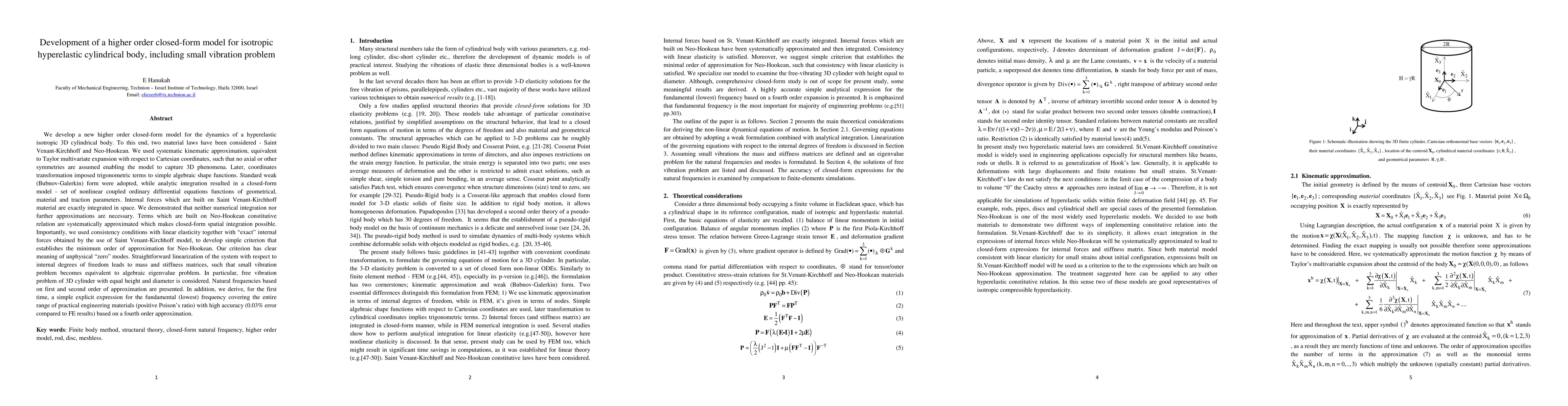 We develop a new higher order closed-form model for the dynamics of a hyperelastic isotropic 3D cylindrical body. We derive, for the first time, a simple explicit expression for the fundamental frequency.