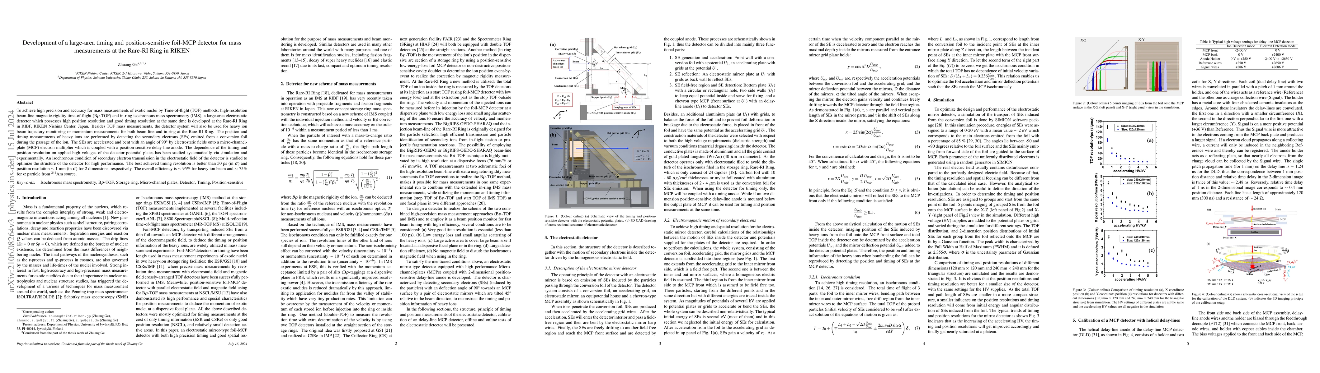 This paper describes the development of a large-area timing and position-sensitive foil-MCP detector for high-precision mass measurements at the Rare-RI Ring in RIKEN. The detector achieves sub-50 ps timing resolution and 1 mm position resolution, enabling accurate TOF mass measurements and heavy ion beam trajectory monitoring.