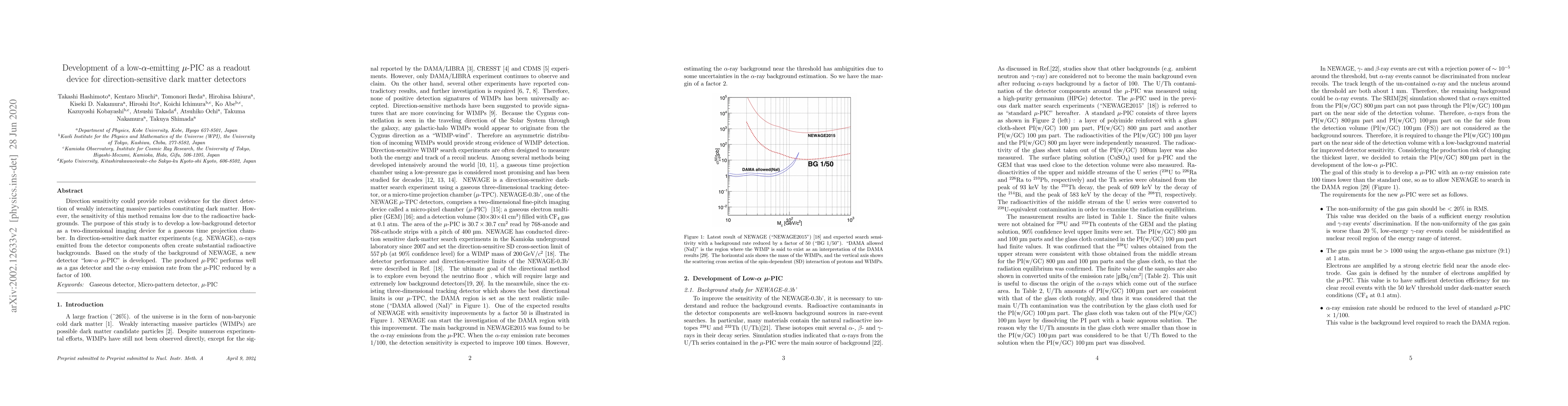 Direction sensitivity could provide robust evidence for the direct detection of weakly interacting massive particles constituting dark matter. However, the sensitivity of this method remains low due to the radioactive backgrounds. The purpose of this study is to develop a low-background detector as a two-dimensional imaging device for a gaseous time projection chamber. In direction-sensitive dark matter experiments~(e.g. NEWAGE), $\alpha$-rays emitted from the detector components often create substantial radioactive backgrounds. Based on the study of the background of NEWAGE, a new detector "low-$\alpha$ $\mu$-PIC" is developed. The produced $\mu$-PIC performs well as a gas detector and the $\alpha$-ray emission rate from the $\mu$-PIC reduced by a factor of 100.