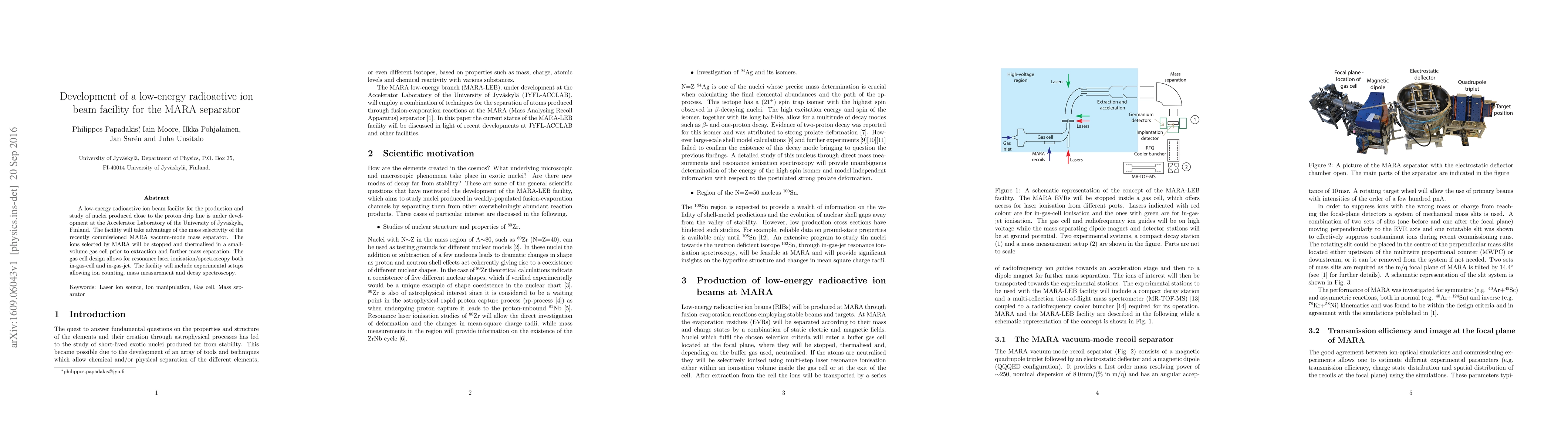 The University of Jyväskylä is developing a low-energy radioactive ion beam facility utilizing MARA separator for nuclei near the proton drip line. The facility will employ a gas cell for ion stopping and resonance laser ionisation/spectroscopy, alongside experimental setups for ion counting, mass measurement, and decay spectroscopy.
