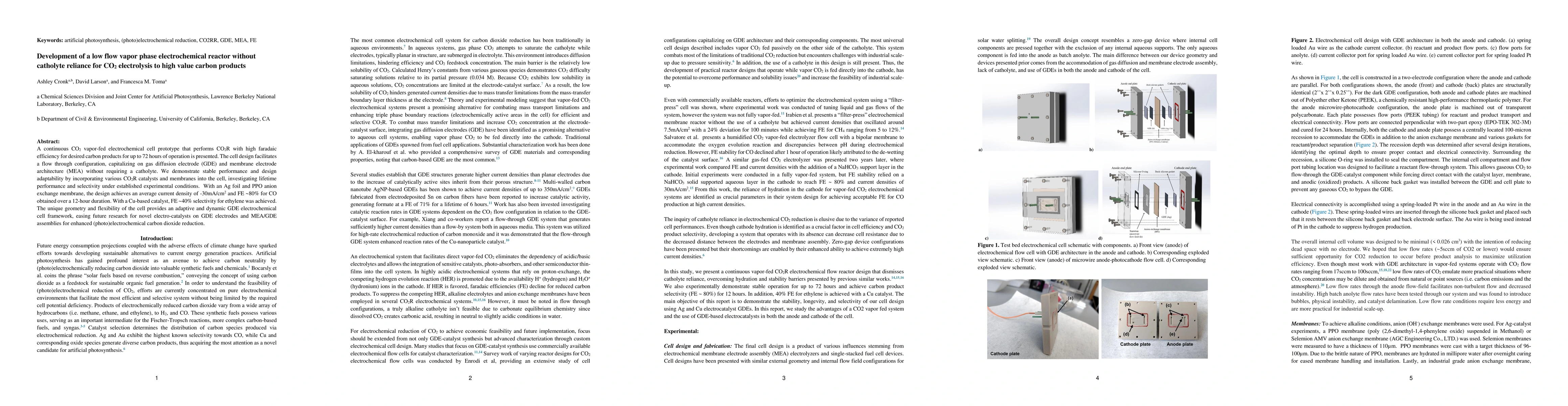 A continuous CO2 vapor-fed electrochemical cell prototype that performs CO2R with high faradaic efficiency for desired carbon products for up to 72 hours of operation is presented. The cell design facilitates a flow through configuration, capitalizing on gas diffusion electrode (GDE) and membrane electrode architecture (MEA) without requiring a catholyte. We demonstrate stable performance and design adaptability by incorporating various CO2R catalysts and membranes into the cell, investigating lifetime performance and selectivity under established experimental conditions. With an Ag foil and PPO anion exchange membrane, the design achieves an average current density of -30mA/cm2 and FE ~80% for CO obtained over a 12-hour duration. With a Cu-based catalyst, FE ~40% selectivity for ethylene was achieved. The unique geometry and flexibility of the cell provides an adaptive and dynamic GDE electrochemical cell framework, easing future research for novel electro-catalysts on GDE electrodes and MEA/GDE assemblies for enhanced (photo)electrochemical carbon dioxide reduction.
