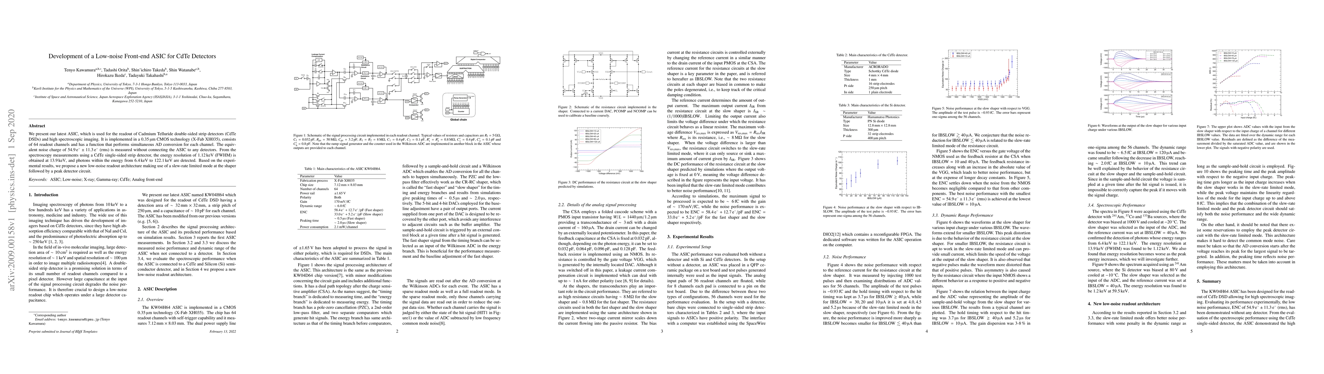 We present our latest ASIC, which is used for the readout of Cadmium Telluride double-sided strip detectors (CdTe DSDs) and high spectroscopic imaging. It is implemented in a 0.35 um CMOS technology (X-Fab XH035), consists of 64 readout channels, and has a function that performs simultaneous AD conversion for each channel. The equivalent noise charge of 54.9 e- +/- 11.3 e- (rms) is measured without connecting the ASIC to any detectors. From the spectroscopy measurements using a CdTe single-sided strip detector, the energy resolution of 1.12 keV (FWHM) is obtained at 13.9 keV, and photons within the energy from 6.4 keV to 122.1 keV are detected. Based on the experimental results, we propose a new low-noise readout architecture making use of a slew-rate limited mode at the shaper followed by a peak detector circuit.