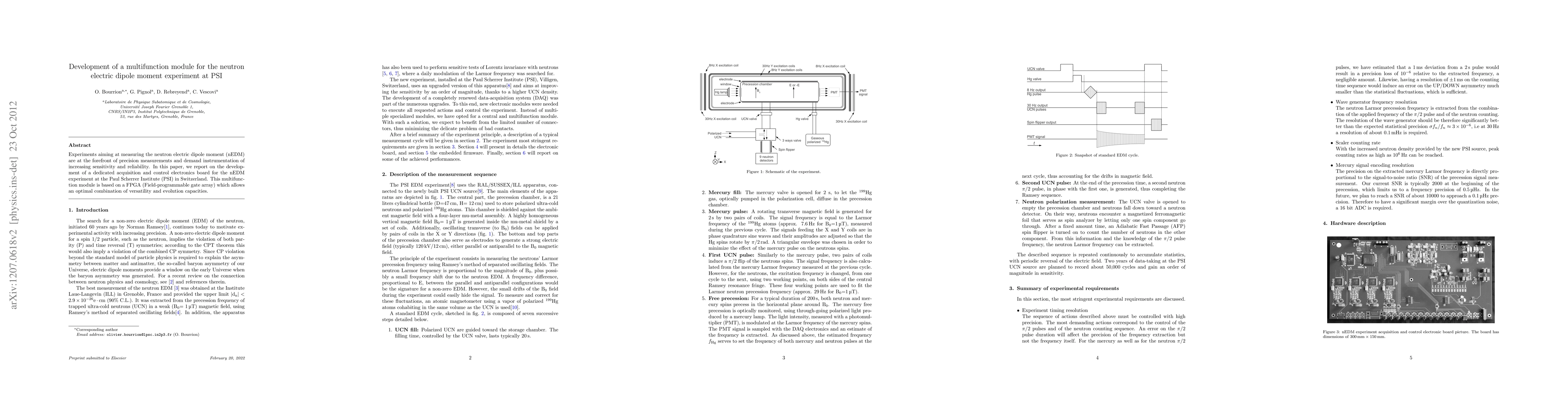 This paper details the creation of a multifunction module using FPGA for the neutron electric dipole moment experiment at PSI, emphasizing enhanced sensitivity and reliability in precision measurement instrumentation. The module offers versatile and evolutionary capabilities essential for the nEDM experiment.