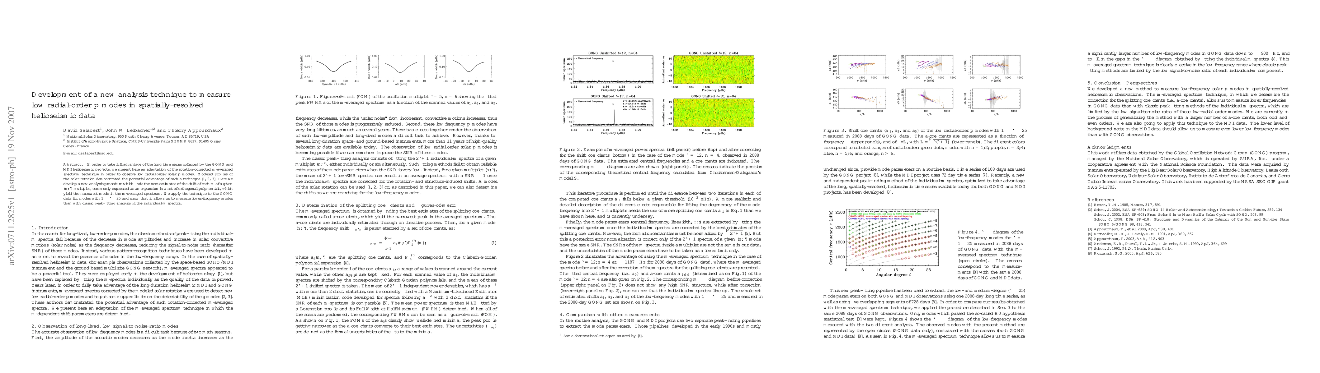 Researchers developed a new technique to measure low radial-order solar p modes in helioseismic data, allowing for the detection of lower-frequency modes than traditional methods.