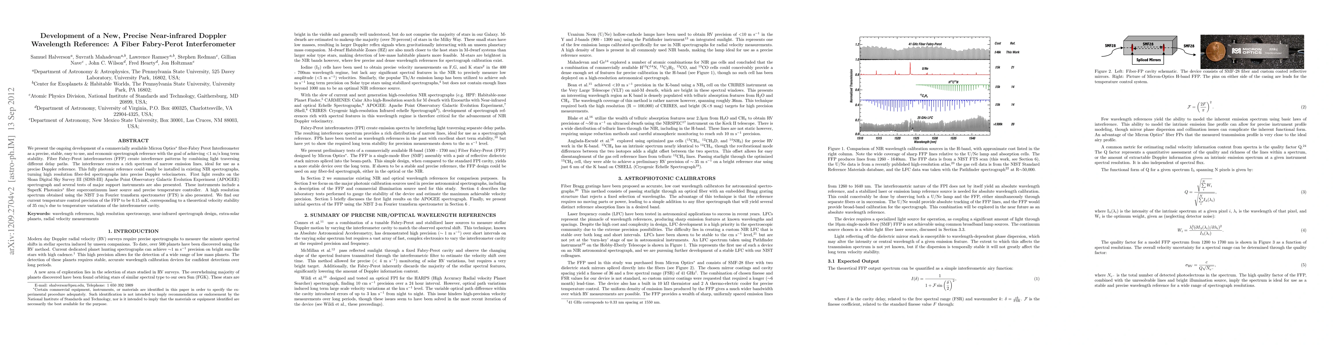 We present the ongoing development of a commercially available Micron Optics fiber-Fabry Perot Interferometer as a precise, stable, easy to use, and economic spectrograph reference with the goal of achieving <1 m/s long term stability. Fiber Fabry-Perot interferometers (FFP) create interference patterns by combining light traversing different delay paths. The interference creates a rich spectrum of narrow emission lines, ideal for use as a precise Doppler reference. This fully photonic reference could easily be installed in existing NIR spectrographs, turning high resolution fiber-fed spectrographs into precise Doppler velocimeters. First light results on the Sloan Digital Sky Survey III (SDSS-III) Apache Point Observatory Galactic Evolution Experiment (APOGEE) spectrograph and several tests of major support instruments are also presented. These instruments include a SuperK Photonics fiber supercontinuum laser source and precise temperature controller. A high resolution spectrum obtained using the NIST 2-m Fourier transform spectrometer (FTS) is also presented. We find our current temperature control precision of the FFP to be 0.15 mK, corresponding to a theoretical velocity stability of 35 cm/s due to temperature variations of the interferometer cavity.