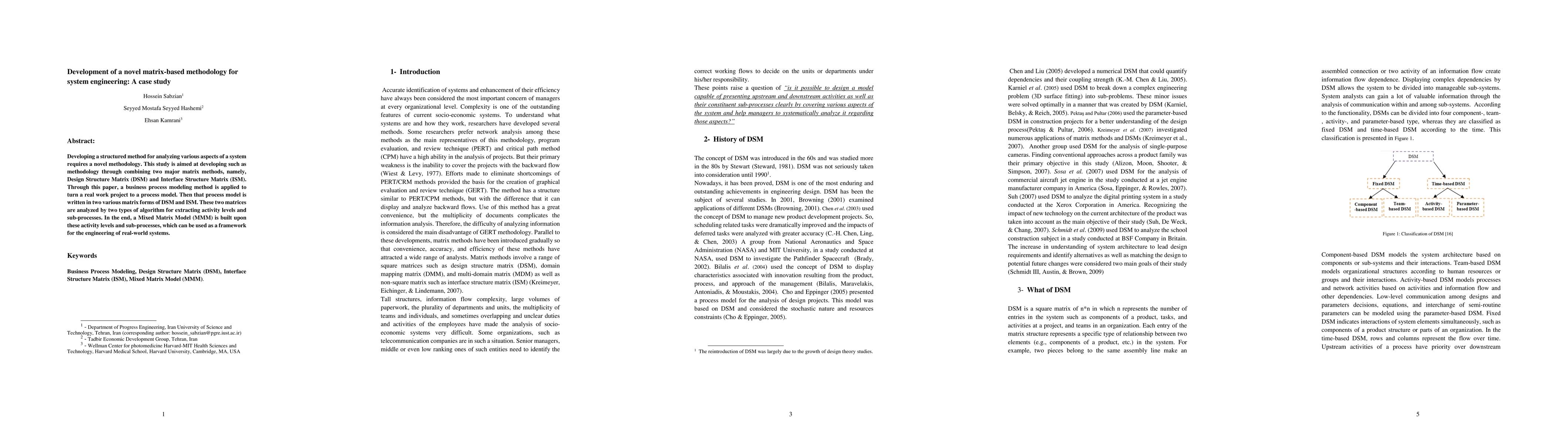 Researchers developed a new methodology for system engineering by combining two matrix methods, DSM and ISM, to create a Mixed Matrix Model (MMM) that can analyze activity levels and sub-processes in real-world systems.