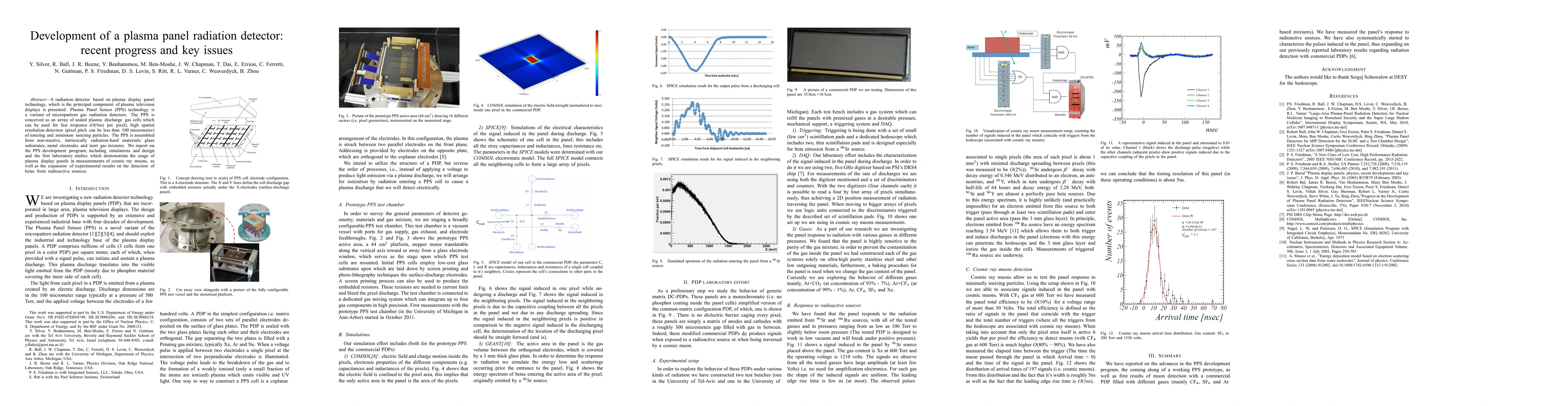 A radiation detector based on plasma display panel technology, which is the principal component of plasma television displays is presented. Plasma Panel Sensor (PPS) technology is a variant of micropattern gas radiation detectors. The PPS is conceived as an array of sealed plasma discharge gas cells which can be used for fast response (O(5ns) per pixel), high spatial resolution detection (pixel pitch can be less than 100 micrometer) of ionizing and minimum ionizing particles. The PPS is assembled from non-reactive, intrinsically radiation-hard materials: glass substrates, metal electrodes and inert gas mixtures. We report on the PPS development program, including simulations and design and the first laboratory studies which demonstrate the usage of plasma display panels in measurements of cosmic ray muons, as well as the expansion of experimental results on the detection of betas from radioactive sources.