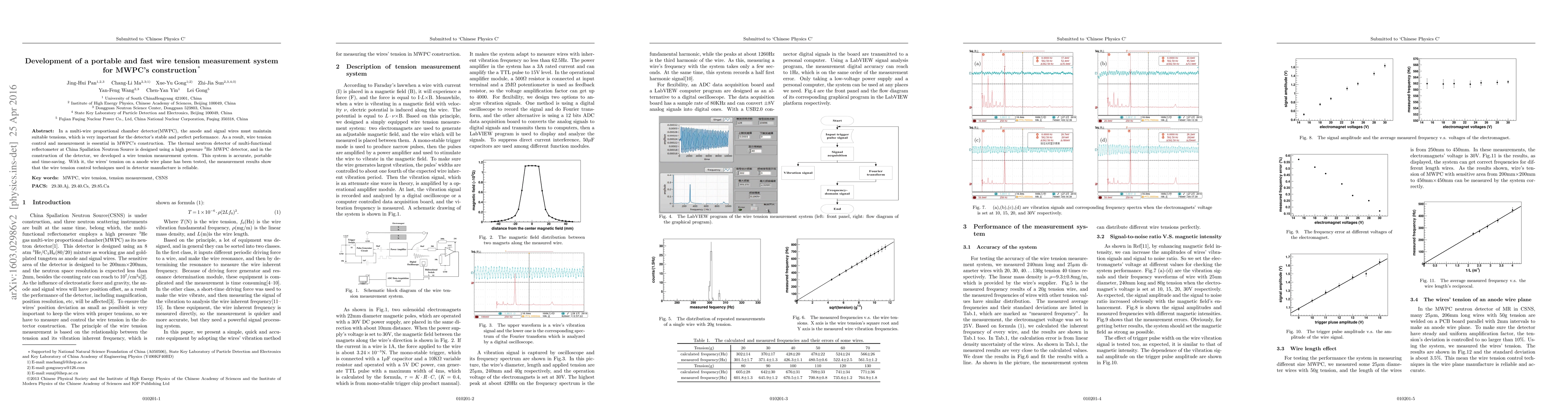 This paper describes the development of a portable and fast wire tension measurement system for constructing multi-wire proportional chamber detectors (MWPCs). The system enables accurate, on-site tension control, ensuring optimal performance of the high pressure $^{3}$He MWPC detector in the thermal neutron detector of the China Spallation Neutron Source.