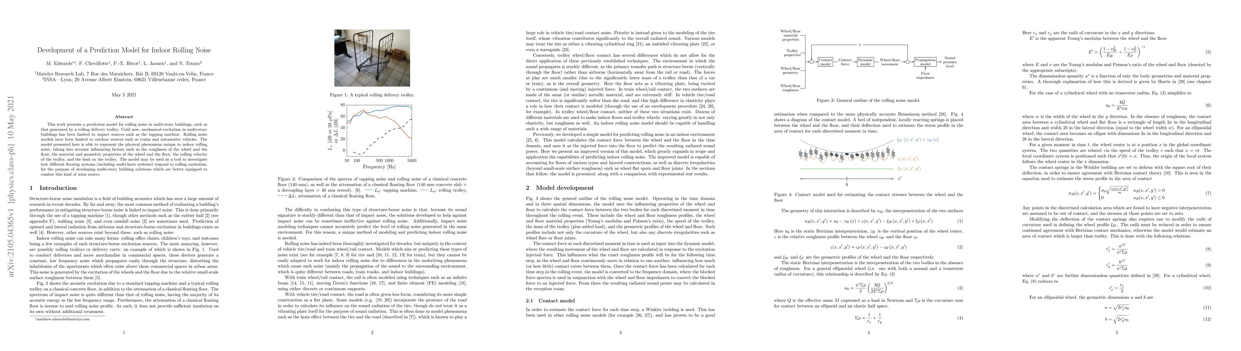 This paper develops a prediction model for indoor rolling noise in multi-story buildings, considering factors like wheel and floor roughness, material properties, and trolley load. The model aims to help design better building solutions to mitigate such noise.