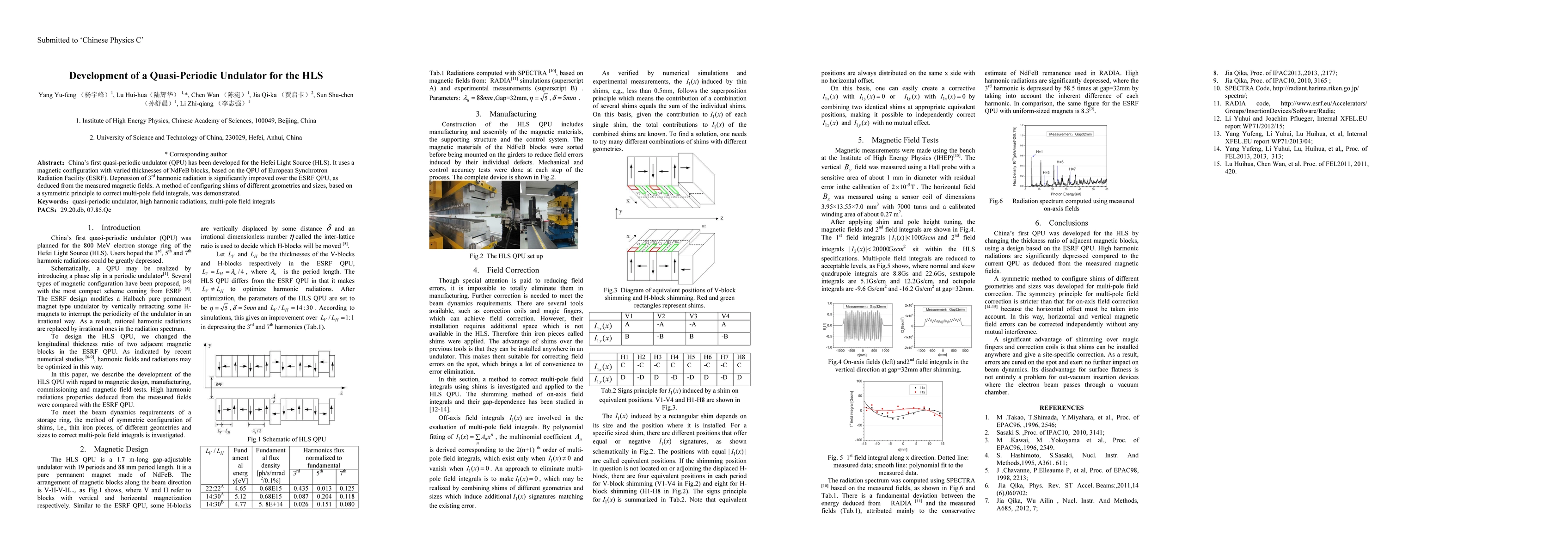 China's first quasi-periodic undulator (QPU) for the Hefei Light Source (HLS) has been successfully developed using varied NdFeB block thicknesses, improving 3rd harmonic radiation depression over the ESRF QPU. This was achieved through a shim configuration method based on symmetric principles for correcting multi-pole field integrals.