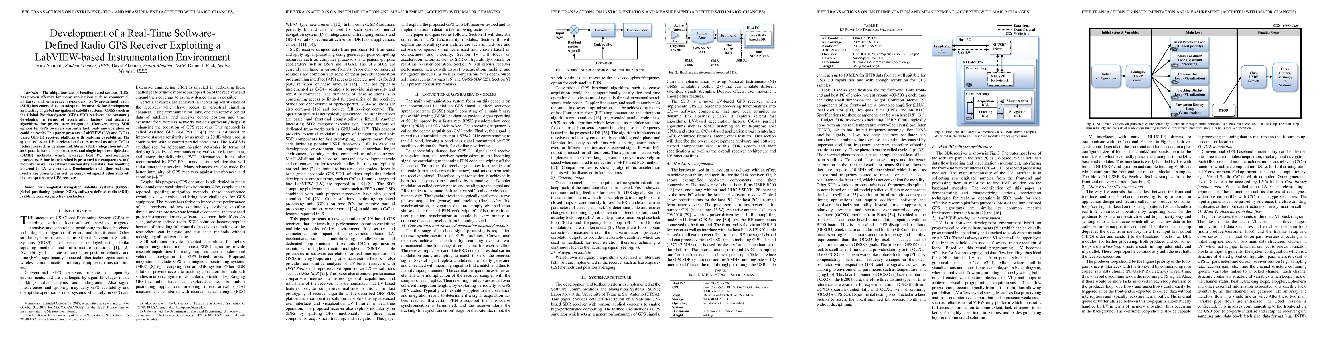 This paper develops a real-time software-defined radio GPS receiver using LabVIEW and C/C++ to enhance real-time operation and cost-effectiveness. The system leverages LabVIEW's acceleration and C/C++ techniques for dynamic integration and parallel processing, achieving competitive performance against other open-source GPS receivers.