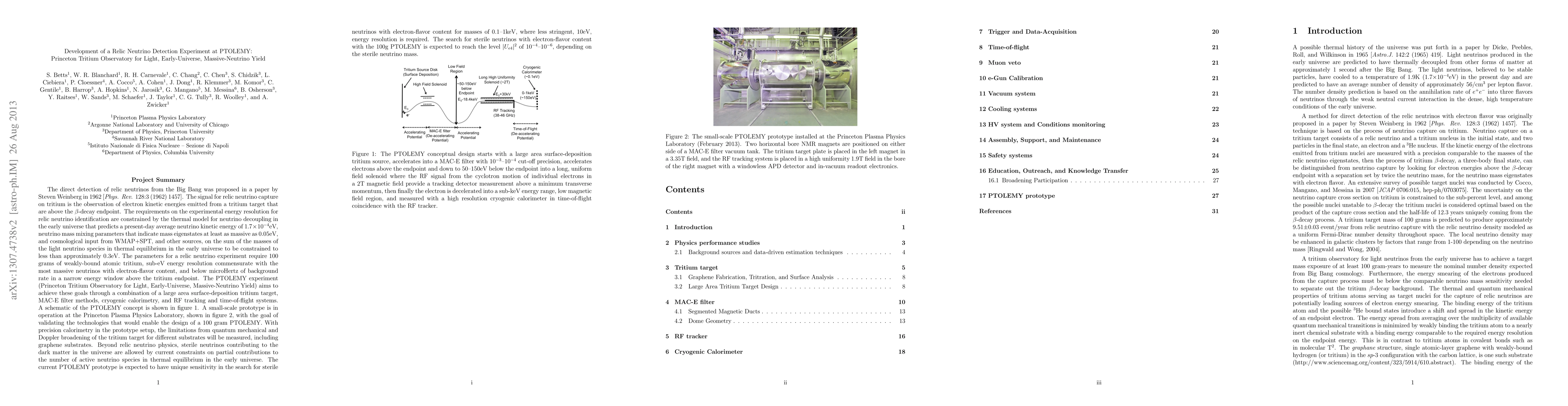 The PTOLEMY experiment seeks to detect the relic neutrino background using advanced tritium target technology, cryogenic calorimetry, and RF tracking. A prototype aims to validate these methods and measure quantum mechanical and Doppler broadening effects, potentially discovering sterile neutrinos contributing to dark matter.