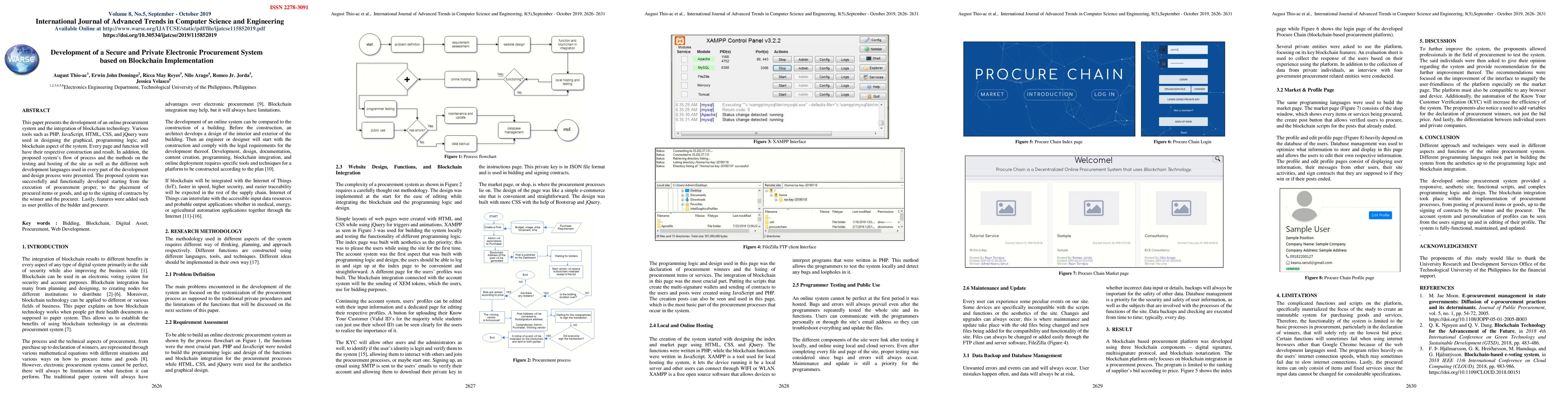 This paper develops a secure electronic procurement system using blockchain technology, integrating web development tools like PHP, JavaScript, and HTML. The system successfully executes procurement processes, manages item placements, and facilitates contract signing, with added user profiles for bidders and procurers.