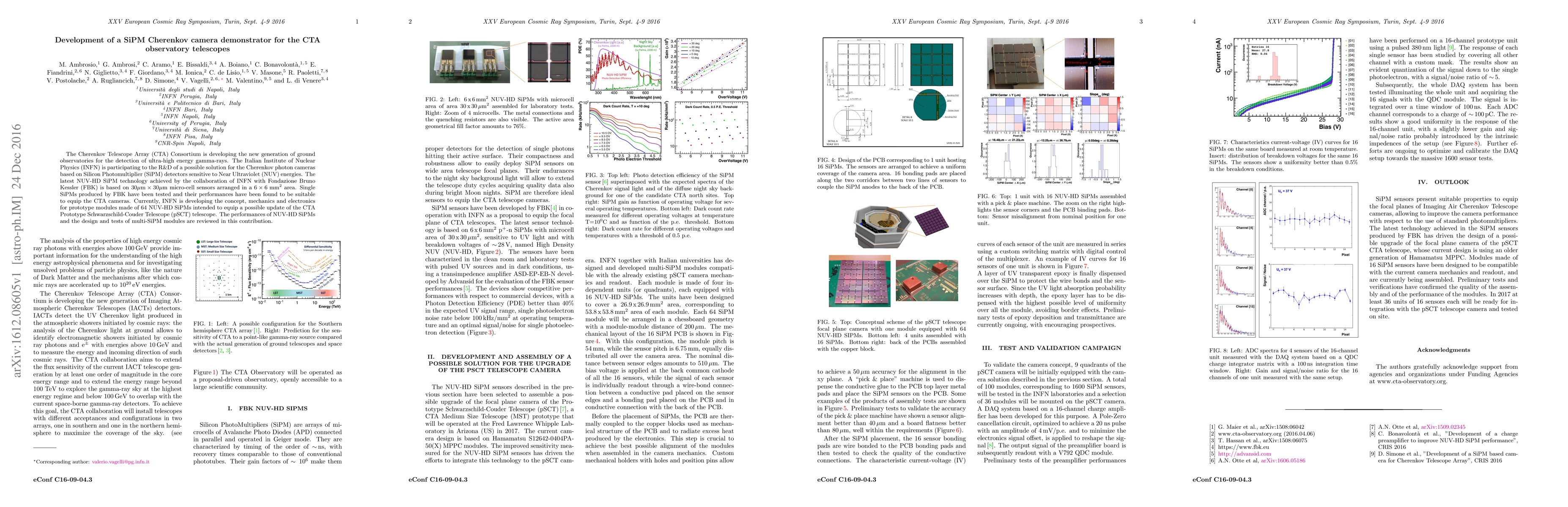 The paper discusses the development of a SiPM Cherenkov camera demonstrator for the CTA observatory, focusing on the use of NUV-HD SiPM technology for detecting ultra-high energy gamma-rays. The INFN and FBK collaboration has produced promising SiPMs, and prototype modules are being developed for potential integration into the CTA Prototype Schwarzschild-Couder Telescope.