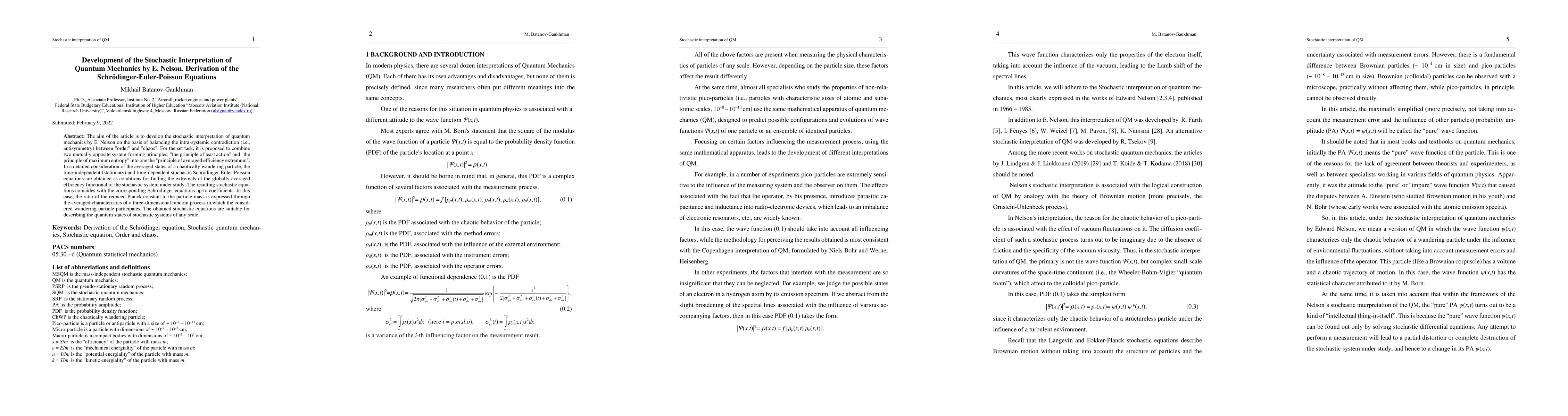 This research contributes to our understanding of the stochastic interpretation of quantum mechanics and its potential applications in fields such as quantum computing and quantum information theory.