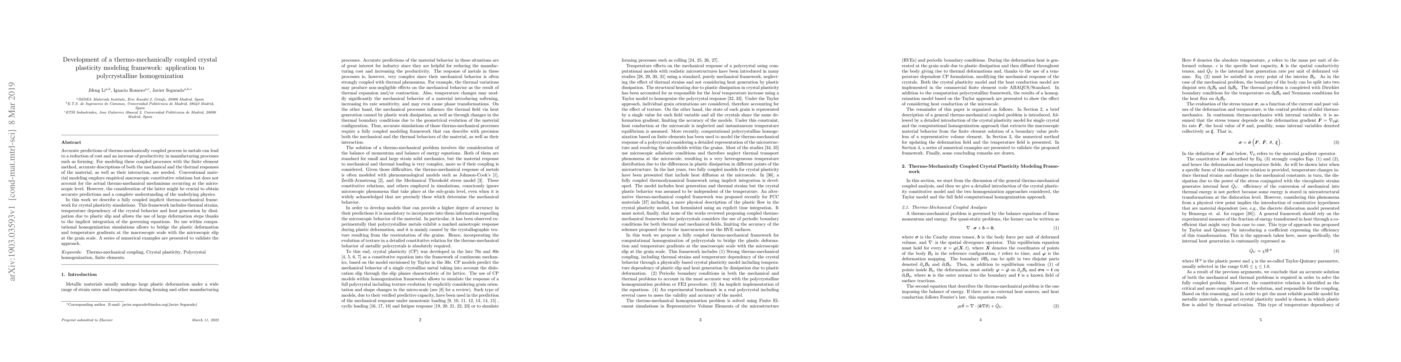 This paper develops a thermo-mechanically coupled crystal plasticity modeling framework for accurate predictions of metal forming processes. The proposed implicit framework accounts for thermal strains, temperature-dependent crystal behavior, and heat generation, enabling large deformation simulations and bridging microscopic slip with macroscopic deformations in computational homogenization.