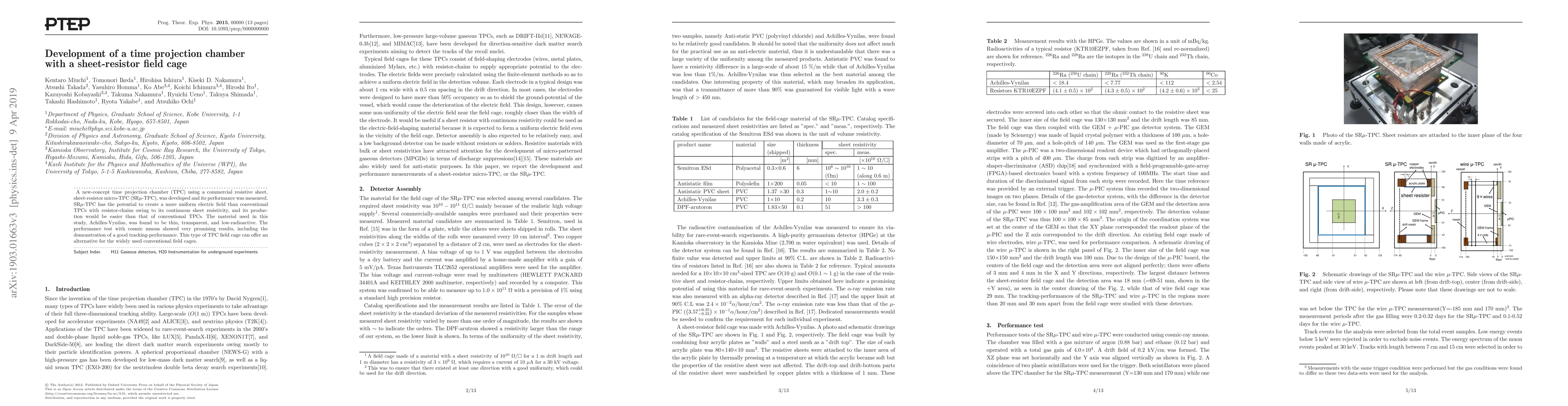 A new-concept time projection chamber (TPC) using a commercial resistive sheet, sheet-resistor micro-TPC SR-microPIC, was developed and its performance was measured. SR-microTPC has the potential to create a more uniform electric field than conventional TPCs with resistor-chains owing to its continuous sheet resistivity, and its production would be easier than that of conventional TPCs. The material used in this study, Achilles-Vynilas, was found to be thin, transparent, and low-radioactive. The performance test with cosmic muons showed very promising results, including the demonstration of a good tracking-performance. This type of TPC field cage can offer an alternative for the widely used conventional field cages