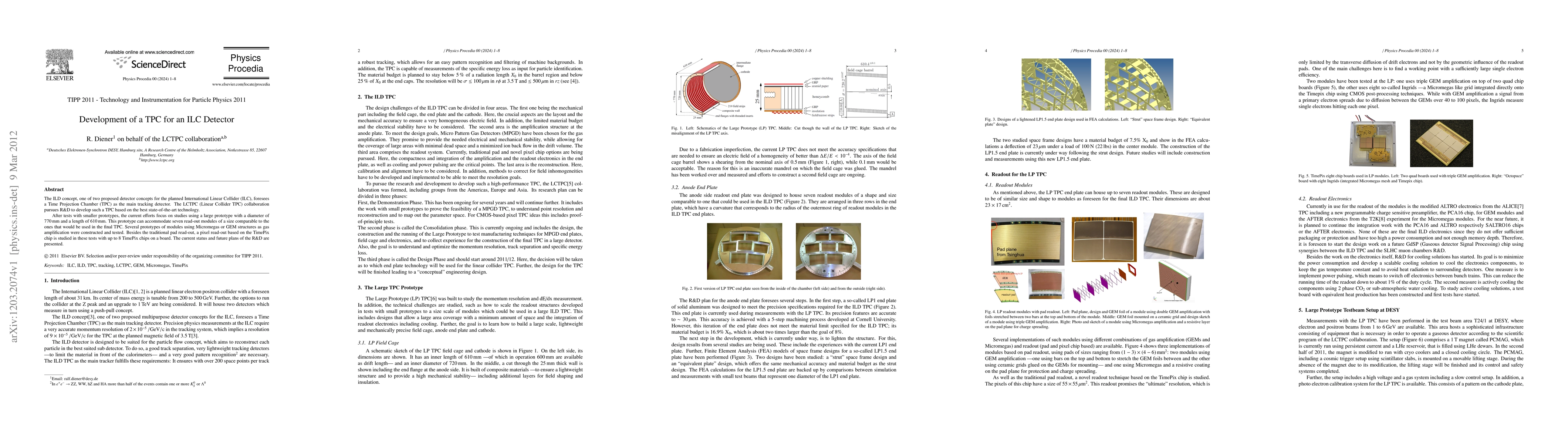 The ILD concept for the International Linear Collider (ILC) includes a Time Projection Chamber (TPC) as its main tracking detector. The LCTPC collaboration is developing this TPC using advanced technology, with current efforts focusing on a large prototype and testing various gas amplification modules and read-out systems.