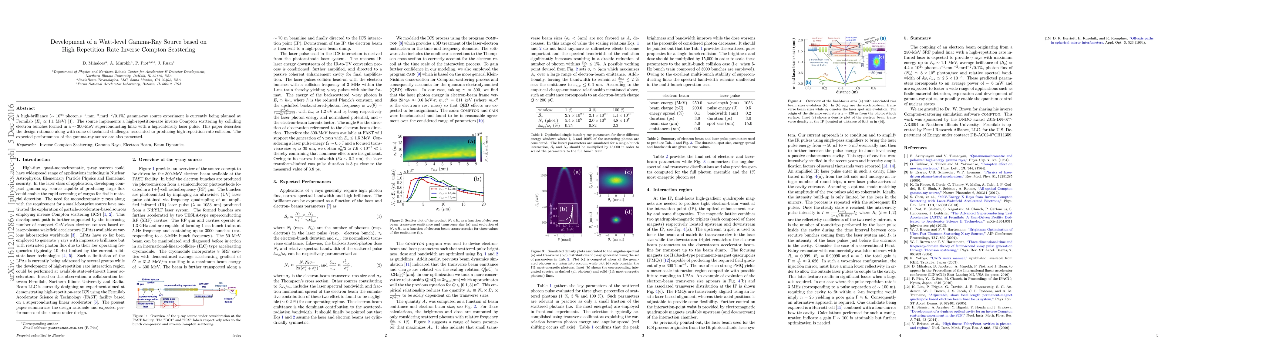 This paper outlines the development of a watt-level gamma-ray source at Fermilab based on high-repetition-rate inverse Compton scattering, utilizing electron bunches from a 300-MeV superconducting linac and high-intensity laser pulses, and discusses the technical challenges and expected performance of the source.