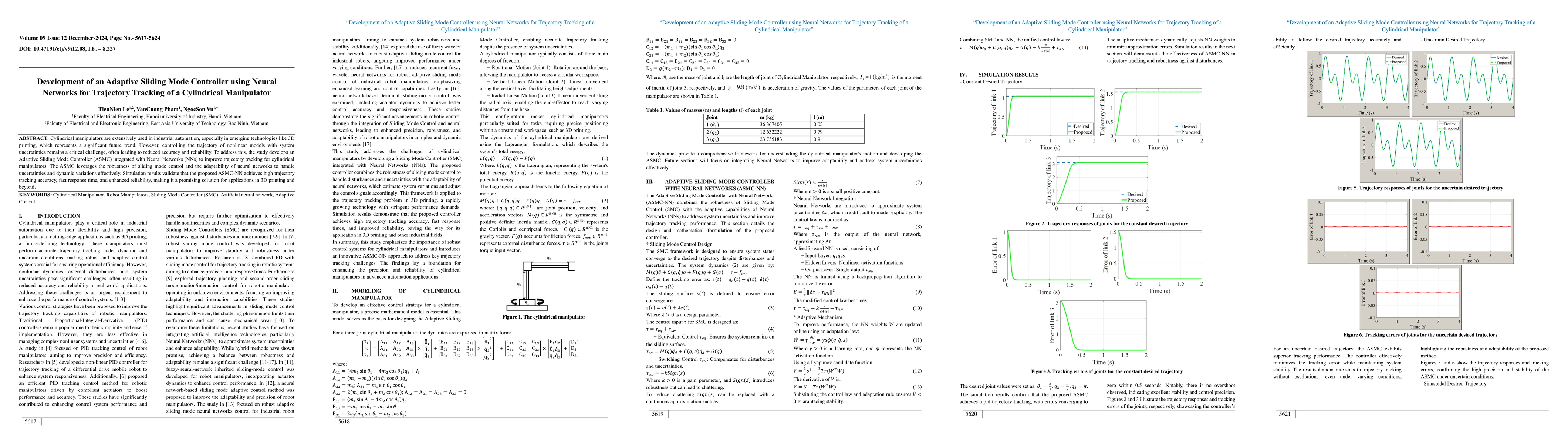 The research develops an Adaptive Sliding Mode Controller (ASMC) enhanced with Neural Networks (NNs) to improve trajectory tracking for cylindrical manipulators, addressing uncertainties and dynamic variations. Simulation results demonstrate high accuracy, fast response, and enhanced reliability, promising for applications in 3D printing and industrial automation.