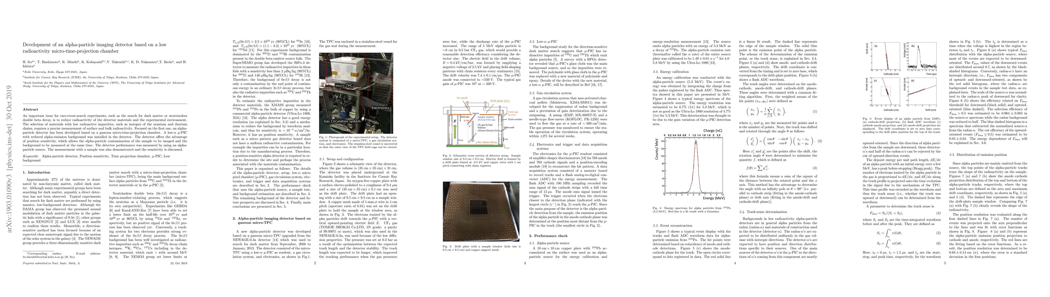 This paper details the development of an alpha-particle imaging detector based on a low radioactivity micro-time-projection chamber (mu-PIC) to minimize background noise in rare-event searches. The detector's performance was validated using an alpha-particle source and a sample, demonstrating its ability to image alpha-particle contamination and measure background simultaneously.