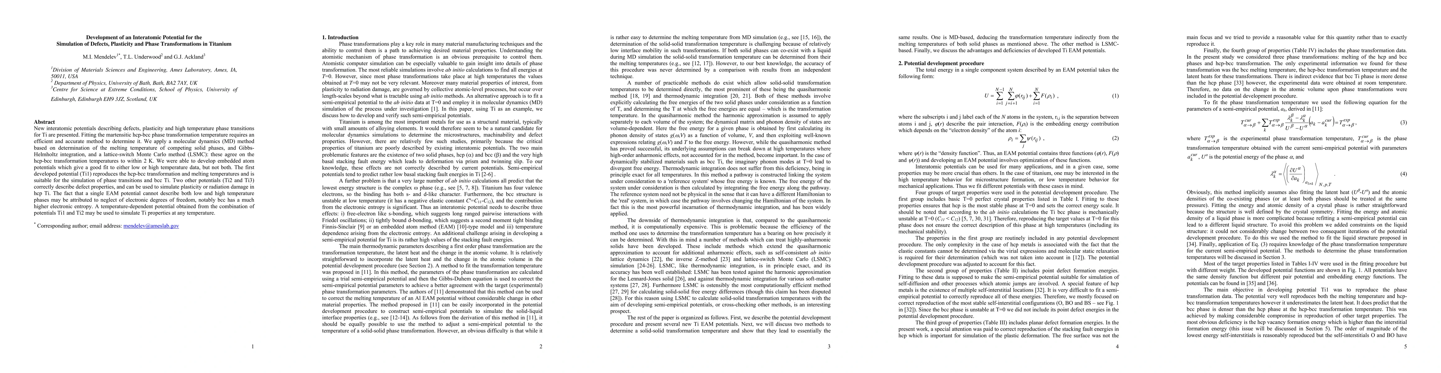 This paper develops new interatomic potentials for titanium, including three distinct models (Ti1, Ti2, and Ti3) that accurately describe defects, plasticity, and phase transformations. While no single potential fits both low and high temperature data, a combined temperature-dependent potential can simulate titanium properties across a wide range of temperatures.