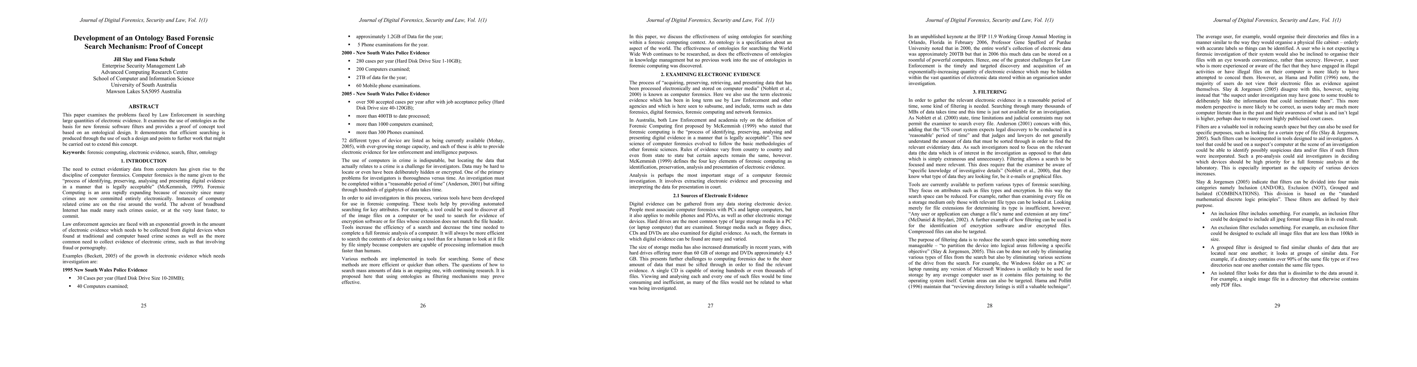 This paper examines the problems faced by Law Enforcement in searching large quantities of electronic evidence. It examines the use of ontologies as the basis for new forensic software filters and provides a proof of concept tool based on an ontological design. It demonstrates that efficient searching is produced through the use of such a design and points to further work that might be carried out to extend this concept.