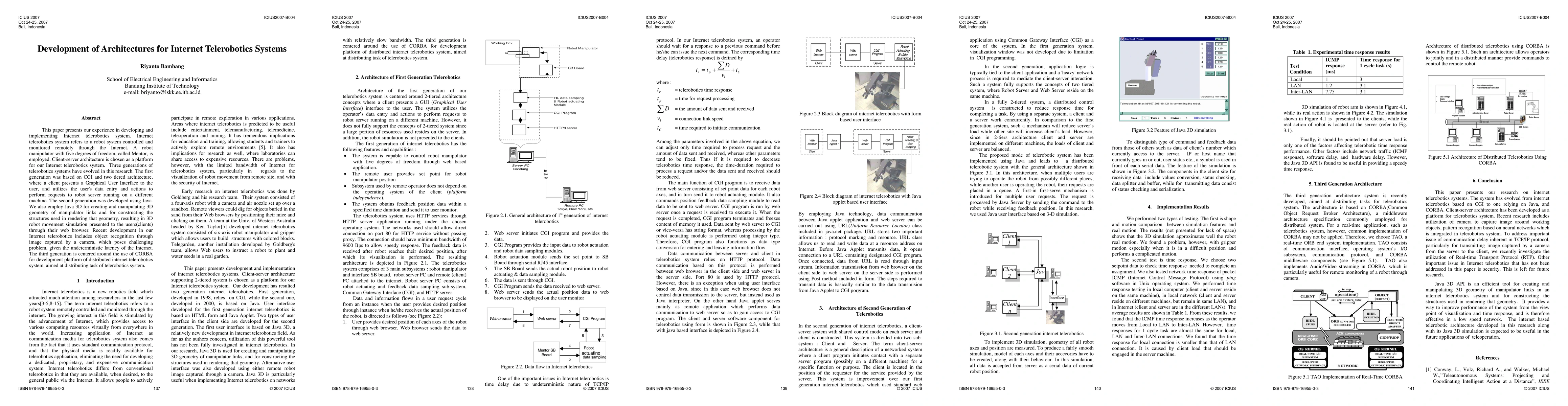 This paper presents our experience in developing and implementing Internet telerobotics system. Internet telerobotics system refers to a robot system controlled and monitored remotely through the Internet. A robot manipulator with five degrees of freedom, called Mentor, is employed. Client-server architecture is chosen as a platform for our Internet telerobotics system. Three generations of telerobotics systems have evolved in this research. The first generation was based on CGI and two tiered architecture, where a client presents a Graphical User Interface to the user, and utilizes the user's data entry and actions to perform requests to robot server running on a different machine. The second generation was developed using Java. We also employ Java 3D for creating and manipulating 3D geometry of manipulator links and for constructing the structures used in rendering that geometry, resulting in 3D robot movement simulation presented to the users(clients) through their web browser. Recent development in our Internet telerobotics includes object recognition through image captured by a camera, which poses challenging problem, given the undeterministic latency of the Internet. The third generation is centered around the use of CORBA for development platform of distributed internet telerobotics system, aimed at distributing task of telerobotics system.