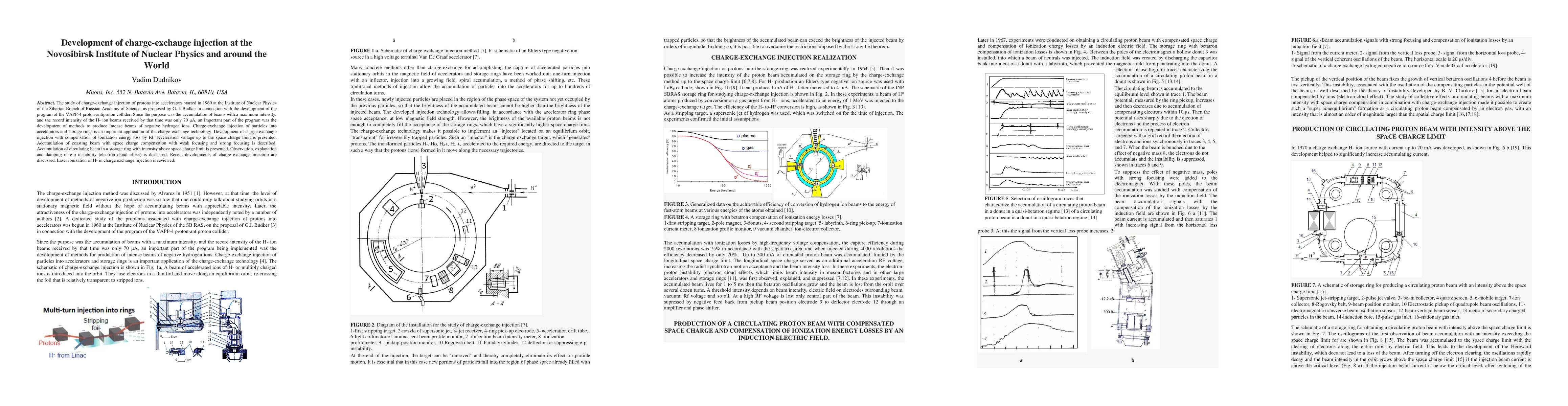 Researchers at Novosibirsk Institute of Nuclear Physics developed charge-exchange injection technology to produce intense beams of negative hydrogen ions for particle accelerators. Their work focuses on accumulation, storage, and compensation techniques, with recent advancements including laser ionization.