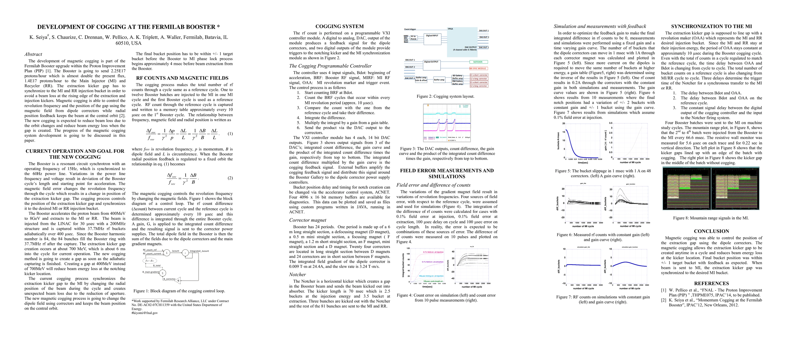 The development of magnetic cogging is part of the Fermilab Booster upgrade within the Proton Improvement Plan (PIP). The Booster is going to send 2.25E17 protons/hour which is almost double the present flux, 1.4E17 protons/hour to the Main Injector (MI) and Recycler (RR). The extraction kicker gap has to synchronize to the MI and RR injection bucket in order to avoid a beam loss at the rising edge of the extraction and injection kickers. Magnetic cogging is able to control the revolution frequency and the position of the gap using the magnetic field from dipole correctors while radial position feedback keeps the beam at the central orbit. The new cogging is expected to reduce beam loss due to the orbit changes and reduce beam energy loss when the gap is created. The progress of the magnetic cogging system development is going to be discussed in this paper.