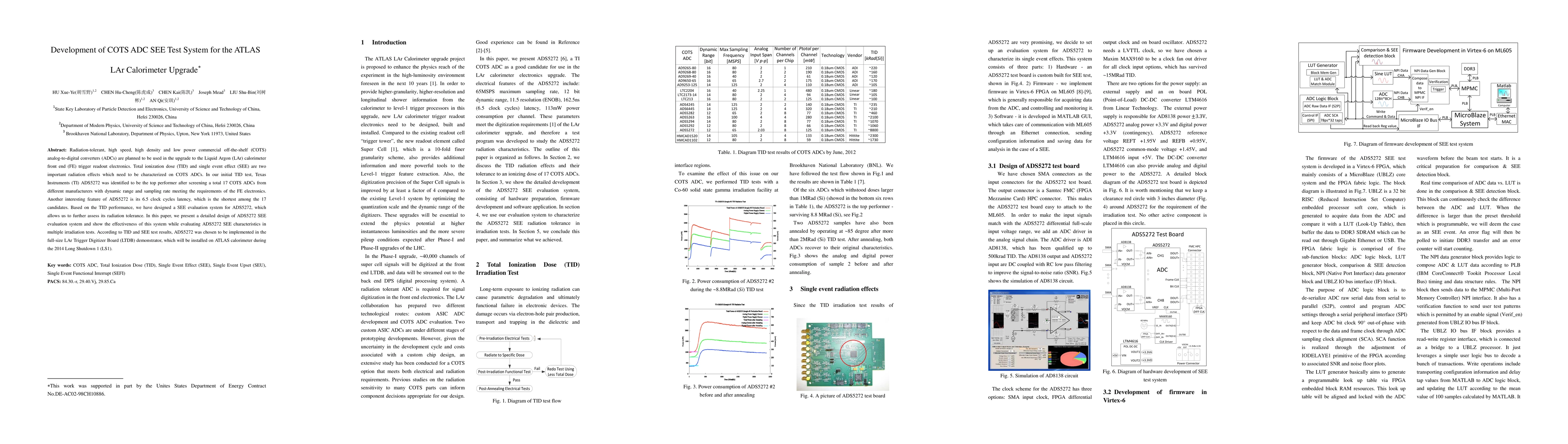 This paper details the development of a test system to evaluate the single event effect (SEE) of a radiation-tolerant COTS ADC, the Texas Instruments ADS5272, for the ATLAS LAr calorimeter upgrade. The system was designed to assess the ADC's radiation tolerance, and results from multiple irradiation tests confirmed its effectiveness, leading to its selection for the LAr Trigger Digitizer Board demonstrator.
