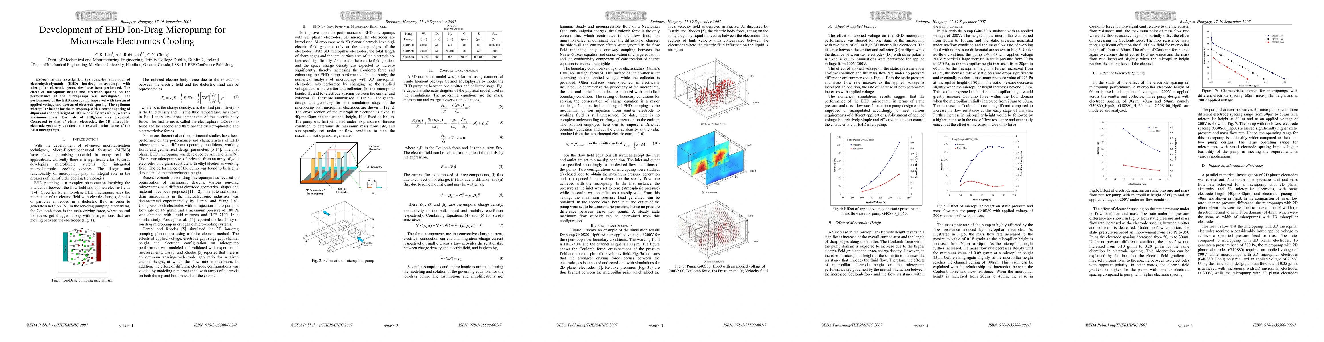 This study numerically simulates electrohydrodynamic (EHD) ion-drag micropumps with micropillar electrodes, finding that performance improves with higher voltage and closer electrode spacing. The optimal micropillar height of 40$\mu$m yielded a maximum mass flow rate of 0.18g/min at 200V, outperforming planar electrodes.