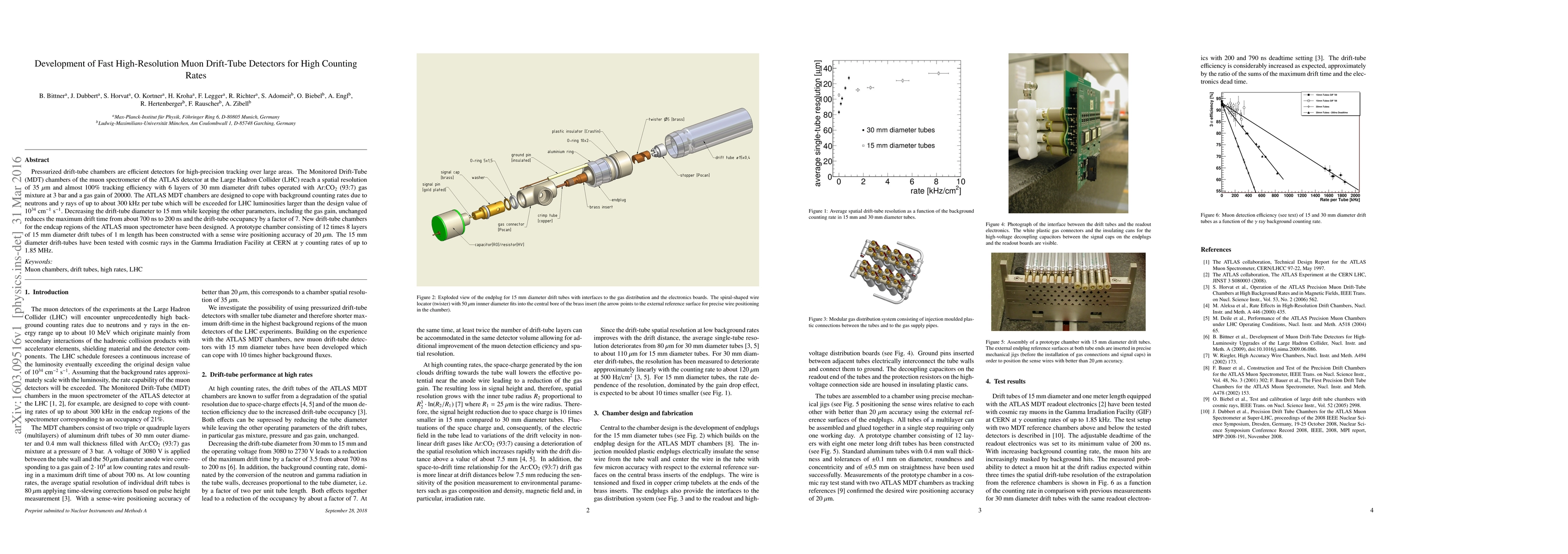 This paper details the development of high-resolution, fast muon drift-tube detectors designed for high counting rates in the ATLAS muon spectrometer at the LHC. The new 15 mm diameter drift-tubes achieve a spatial resolution of 35 micrometers and have been tested at counting rates up to 1.85 MHz, demonstrating their potential to handle increased LHC luminosities.