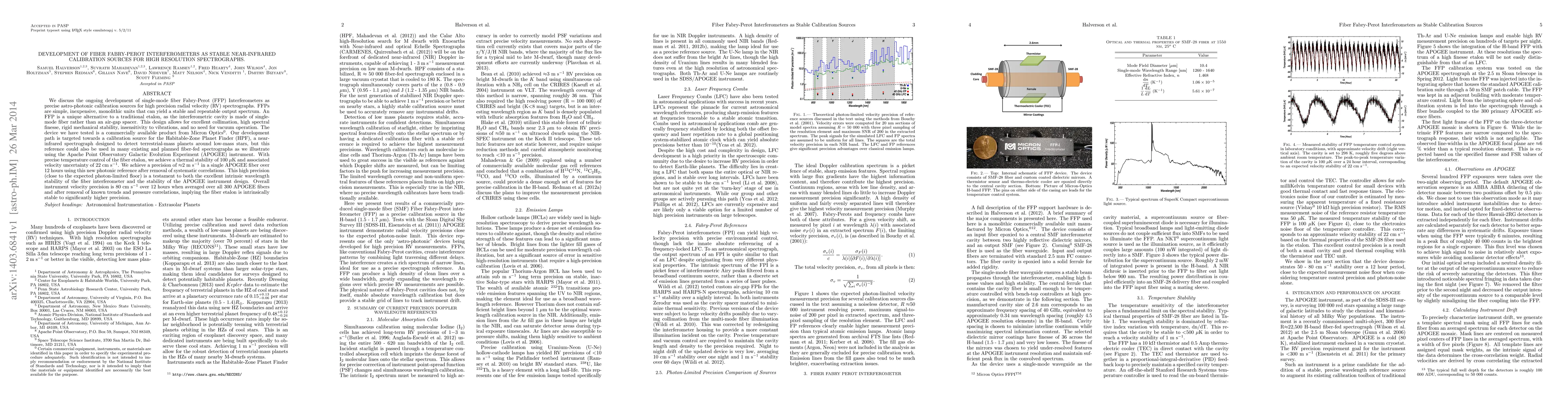 This paper develops single-mode fiber Fabry-Perot Interferometers as stable calibration sources for high-resolution spectrographs, achieving a precision of ≈2 m s$^{-1}$ over 12 hours for the APOGEE instrument, demonstrating their potential for use in radial velocity spectrographs like the Habitable-Zone Planet Finder.